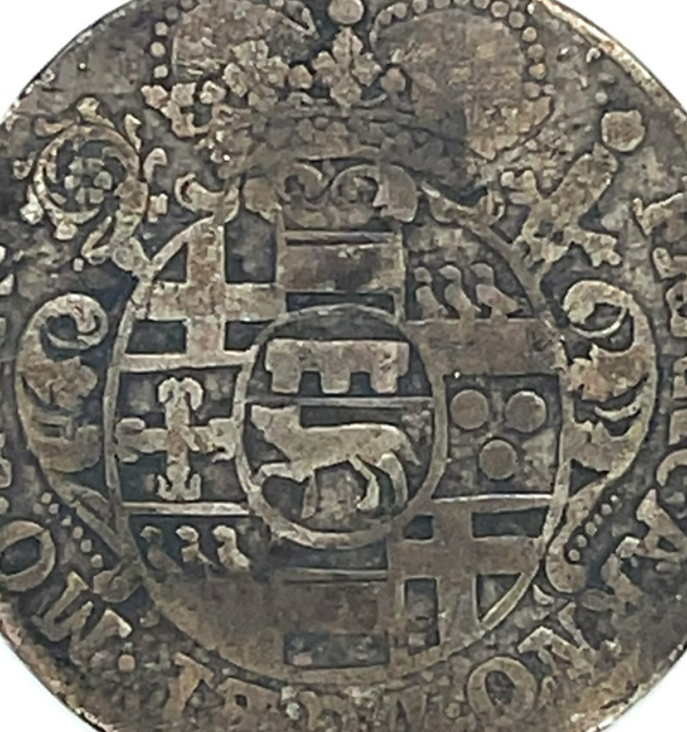 Avers: ovale couronne des bras 8 fois, avec bouclier central de Wolff-Metternich, dans un cadre baroque, superpose a des epees croisees et Crozier