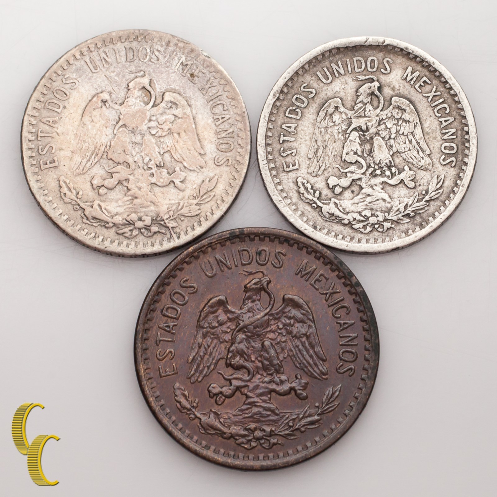 1906, 1911 & 1919 Mexico Centavos 1C, 10C & 20C plein De 3 Pièces
