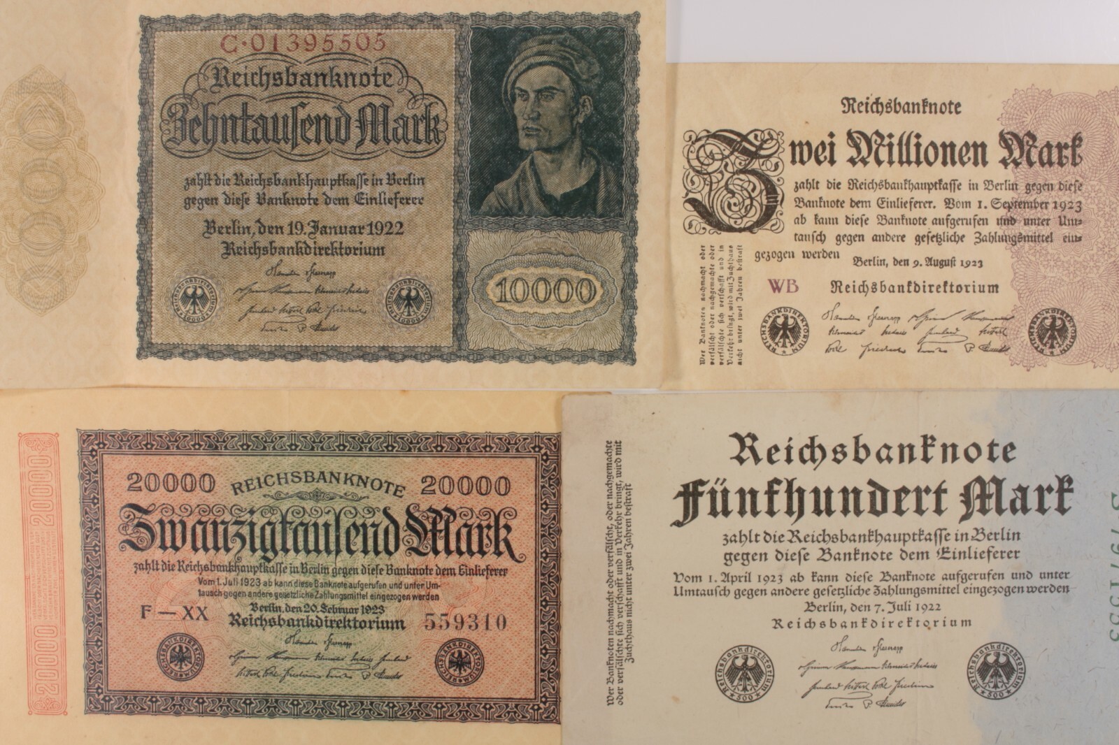1922-1923 ALLEMAGNE 4-Notes Set // Weimar Republic 500 10000 20000 2 millions de choses