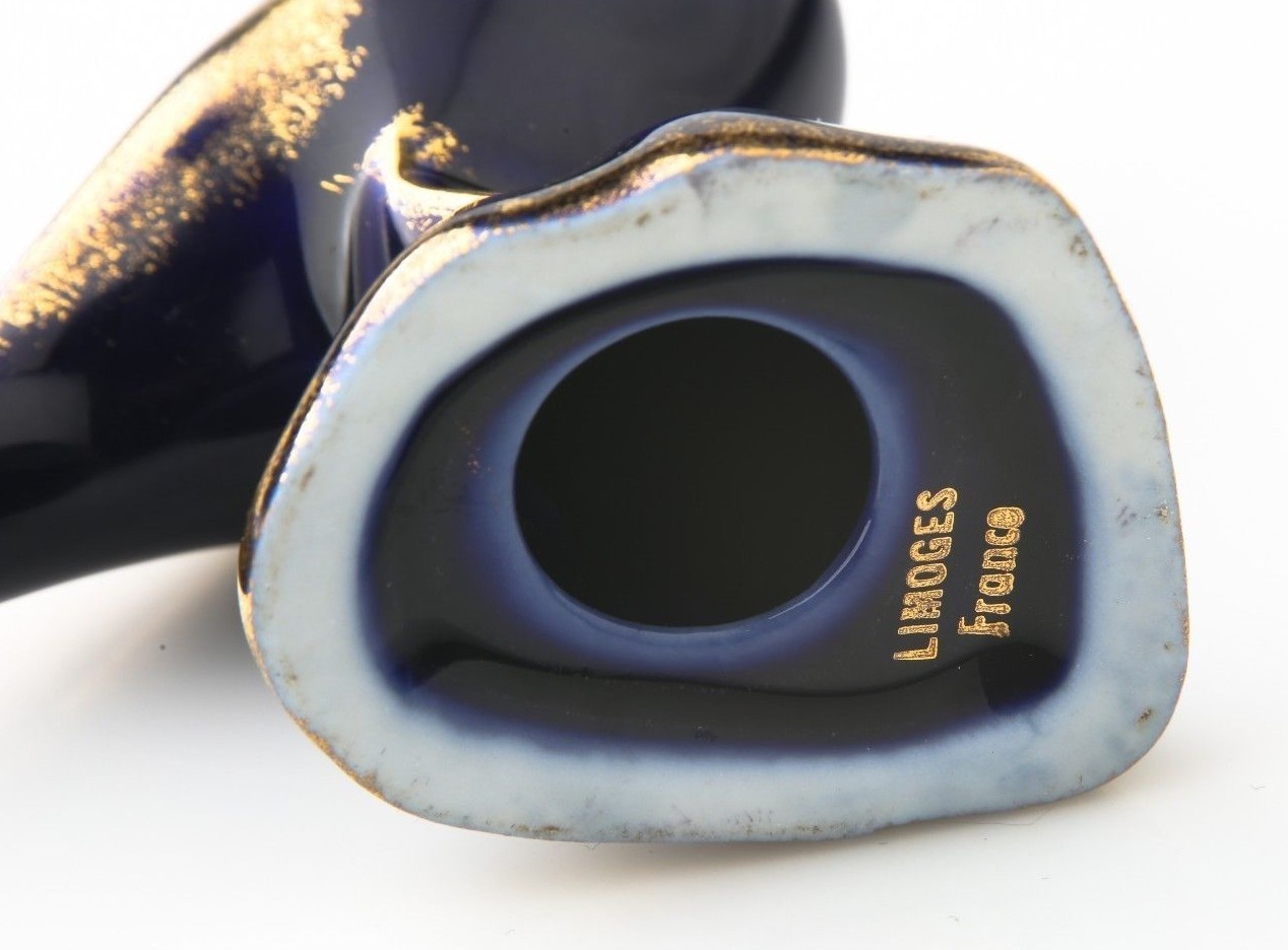 Limoges peintes a la main bleu cobalt figurine d'oiseau francais