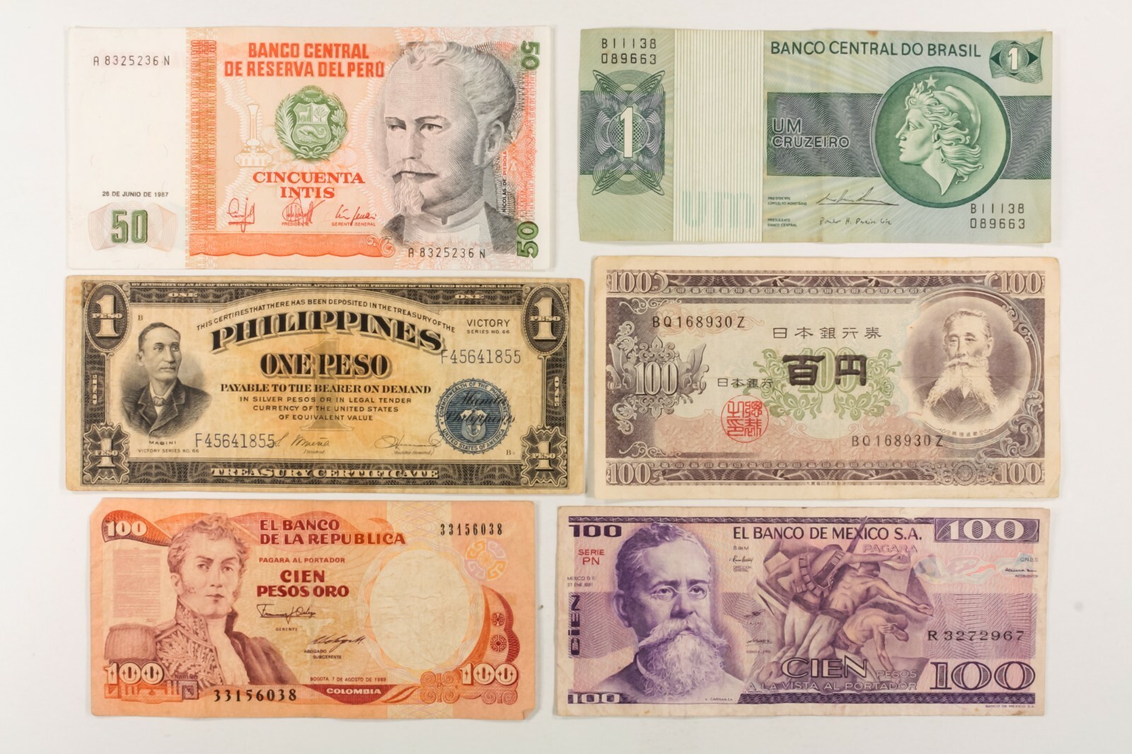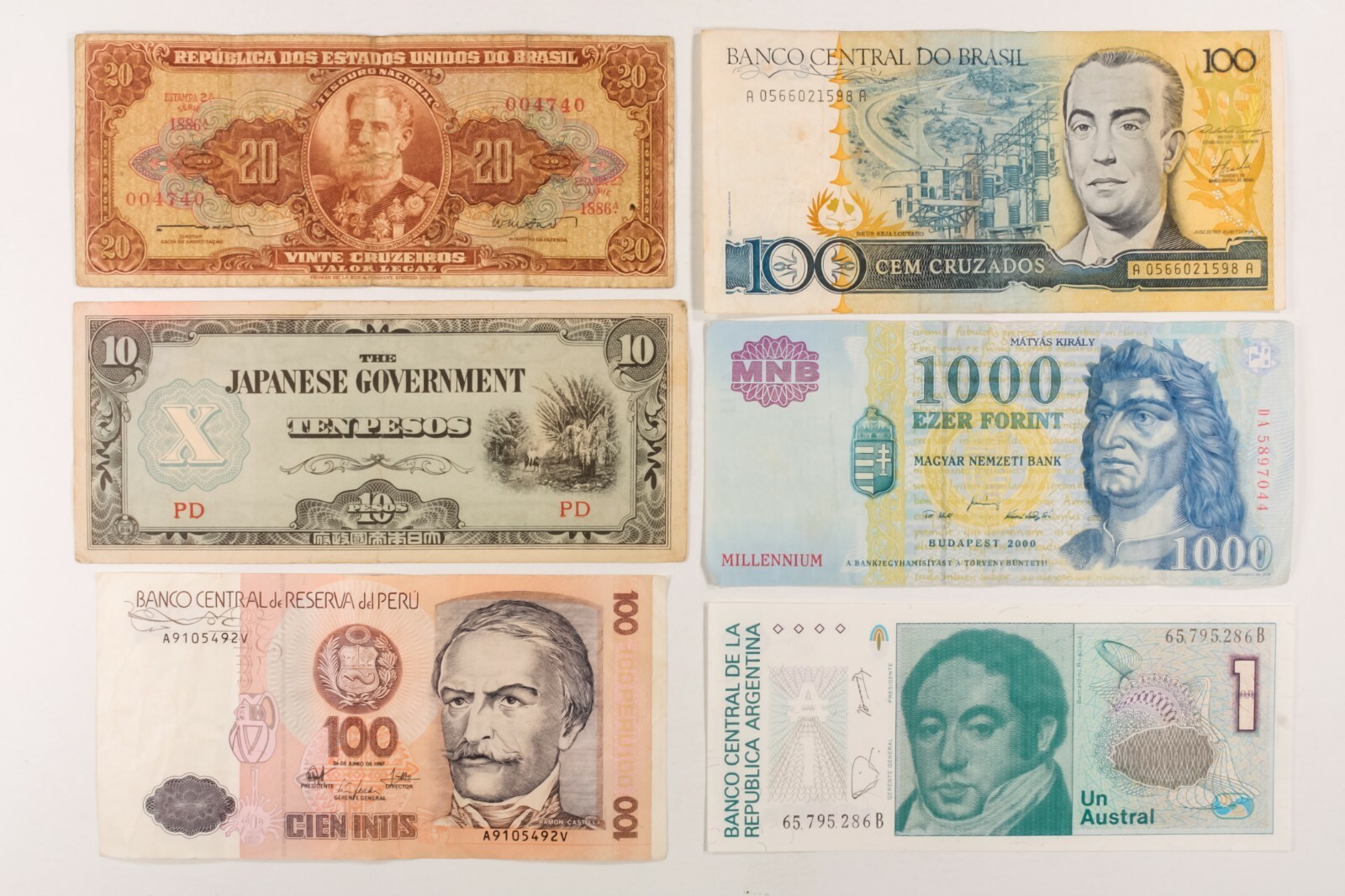 Notes mondiales. Europe diverses, Asie, Amerique centrale et sud. 50 notes Lot