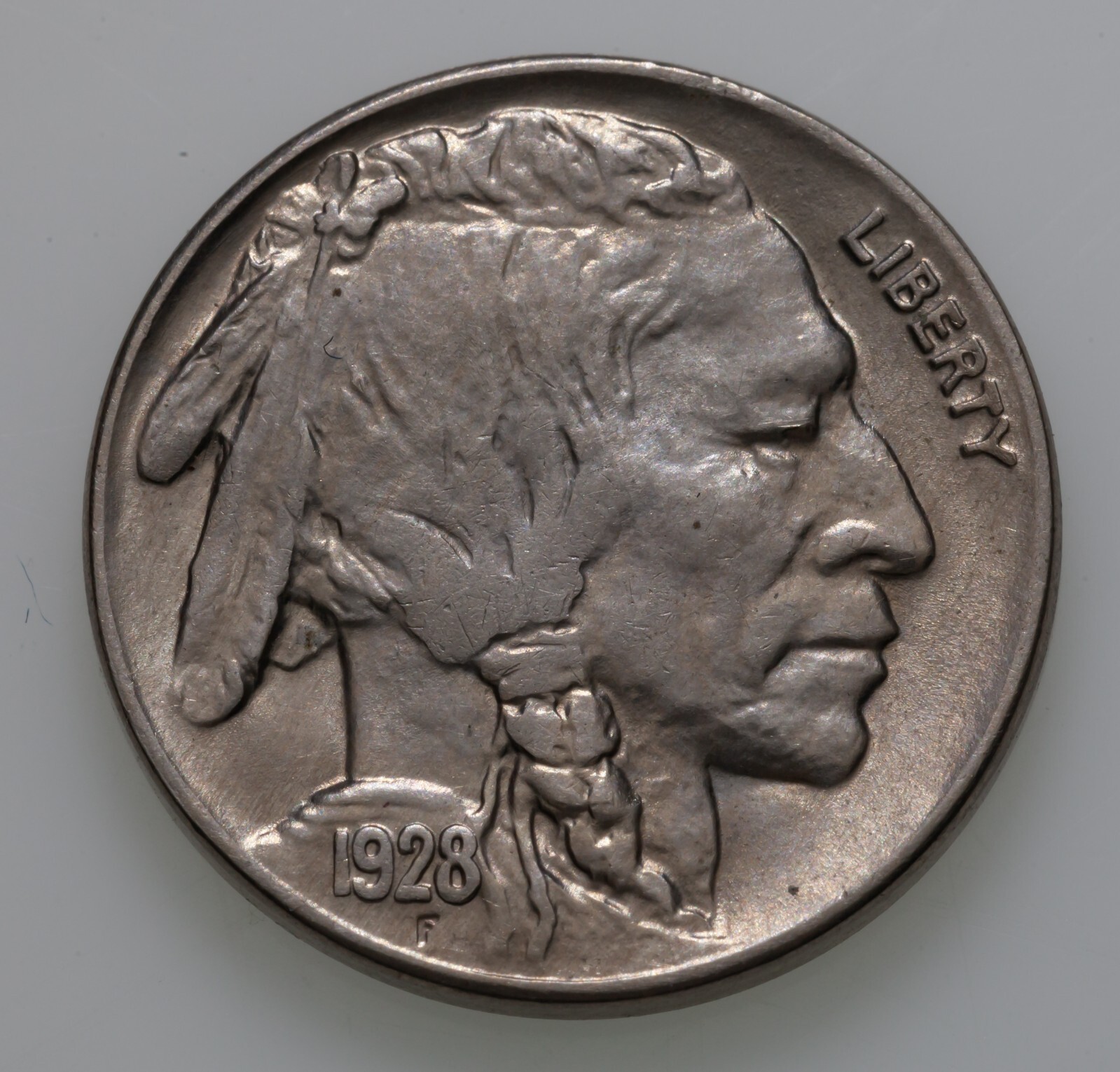 1928 5c Buffalo Nickel dans le choix de la condition Bu, excellent attrait oculaire, lustre complet