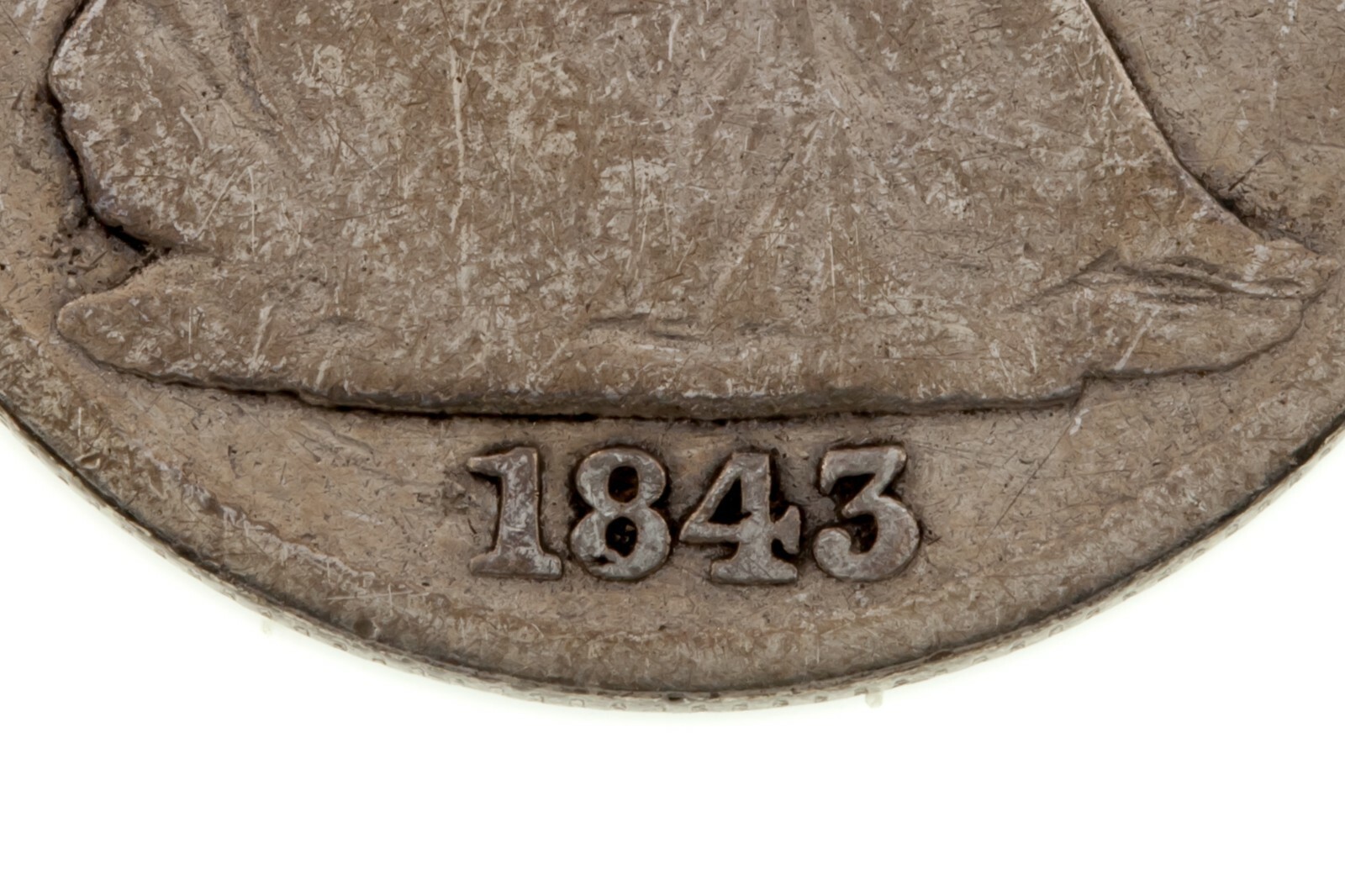 1843 50c Assis demi-dollar en bon etat, jantes pleine, gris clair