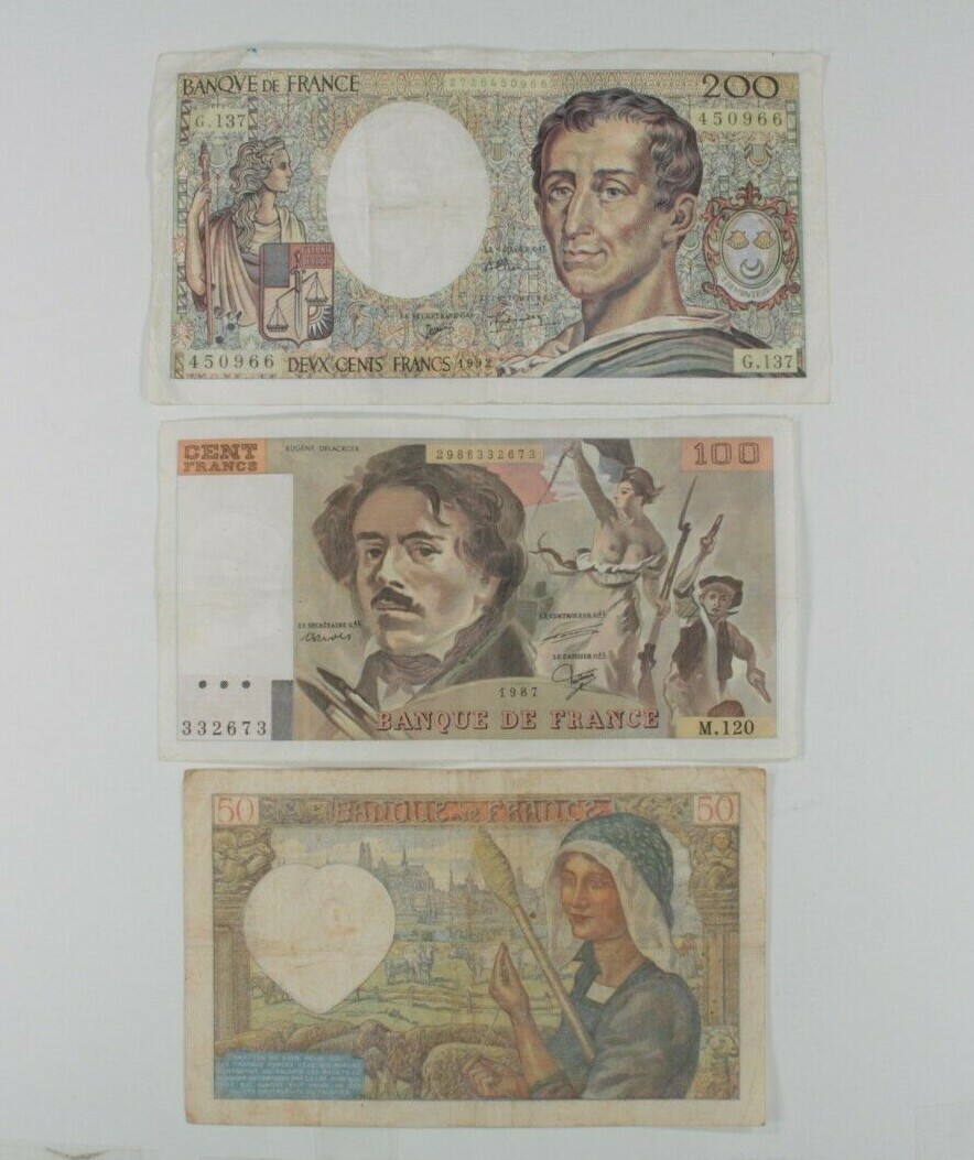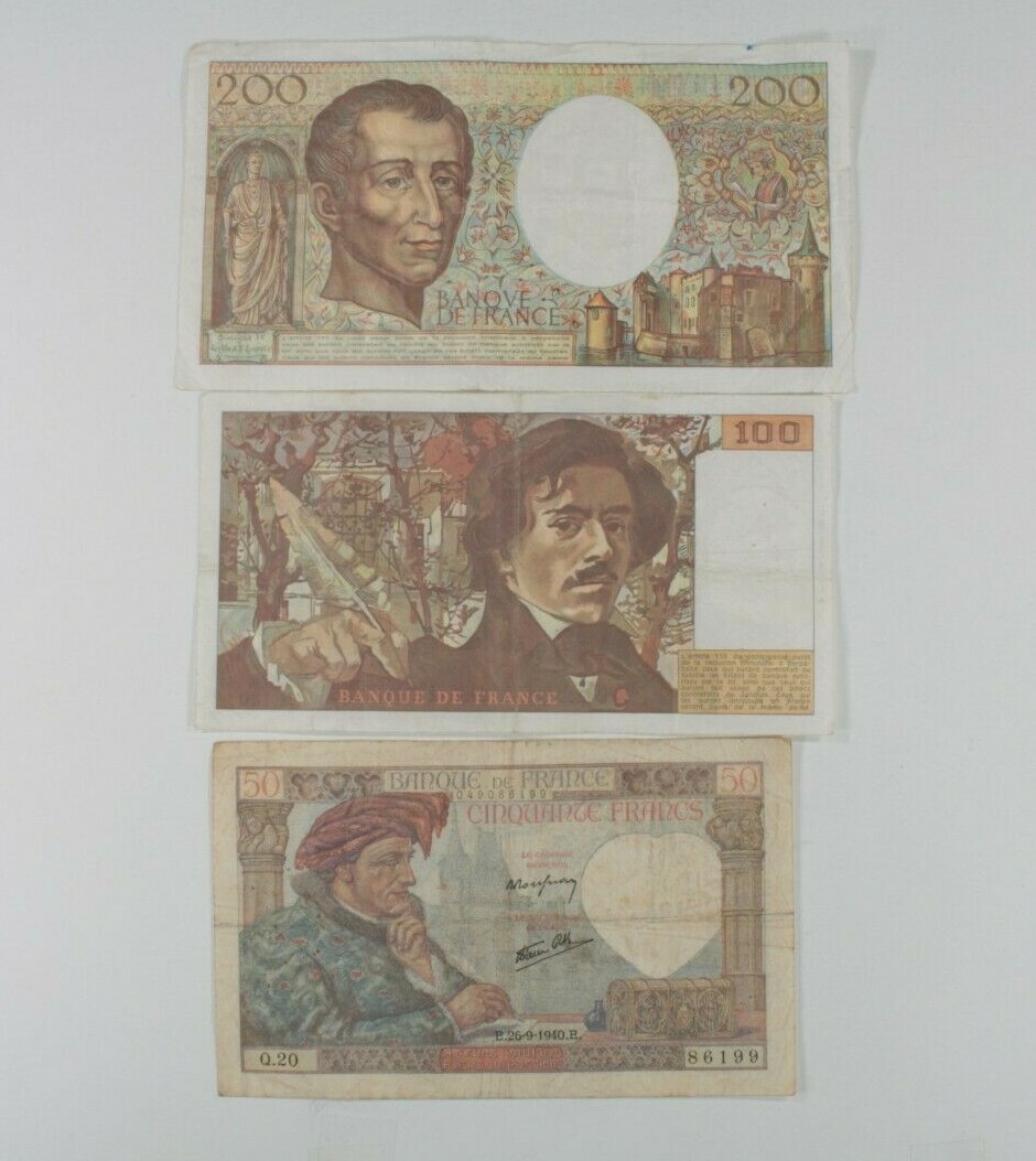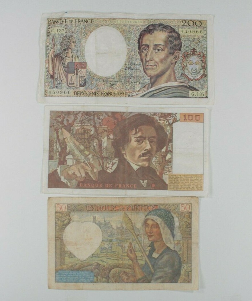 France 3 notes Francs Set // Jacques Coeur, Eugene Delacroix Montesquieu
