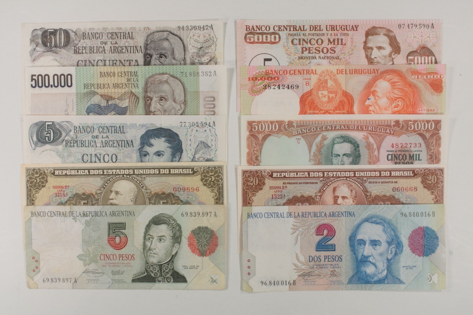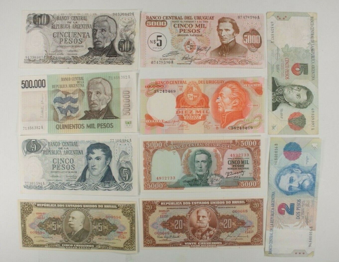 Du Sud Américain Nations 10-Notes Lot Argentine, Brésil & Uruguay