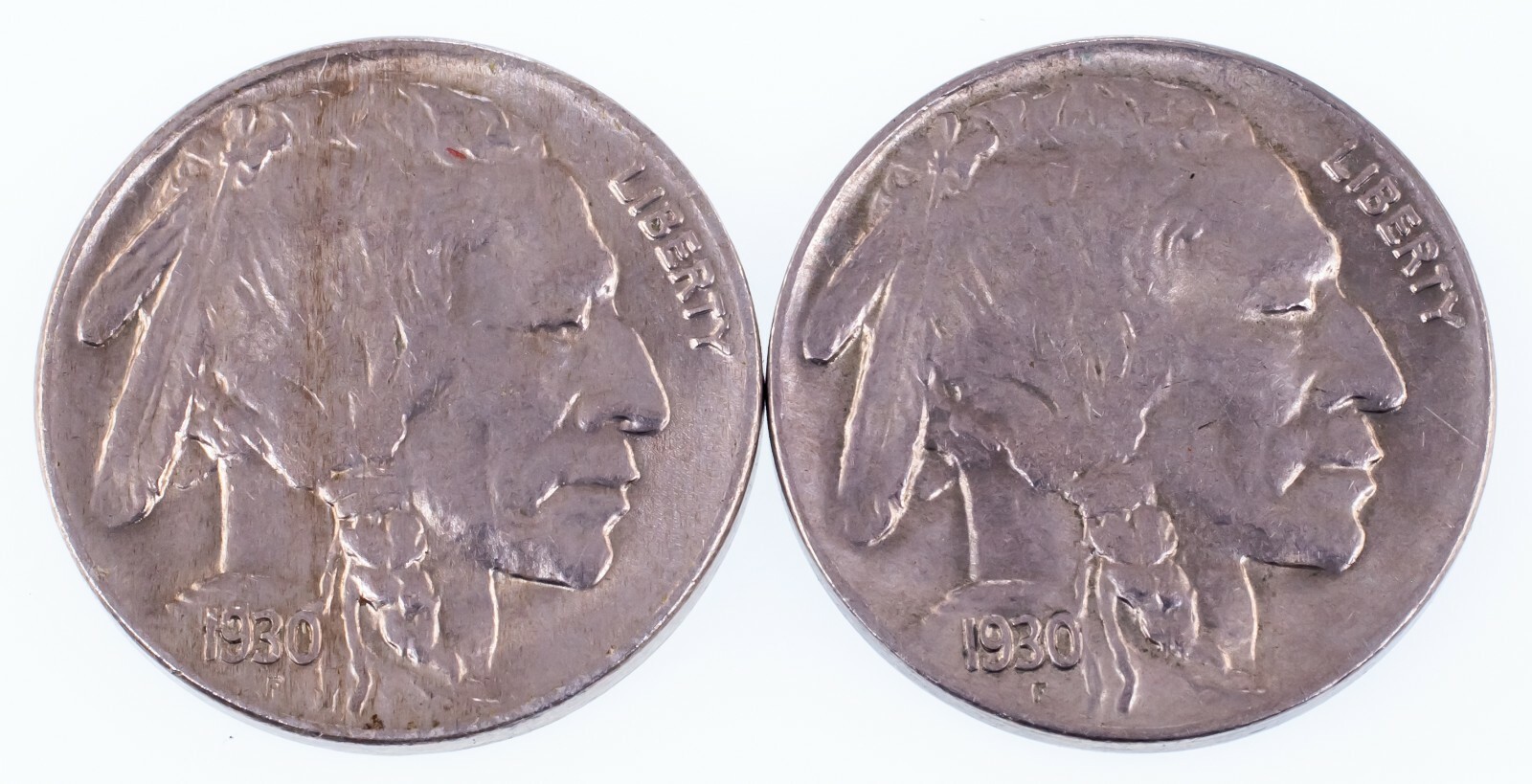 Lot de 2 1930 Buffalo Nickels (P + S) en etat, couleur naturelle