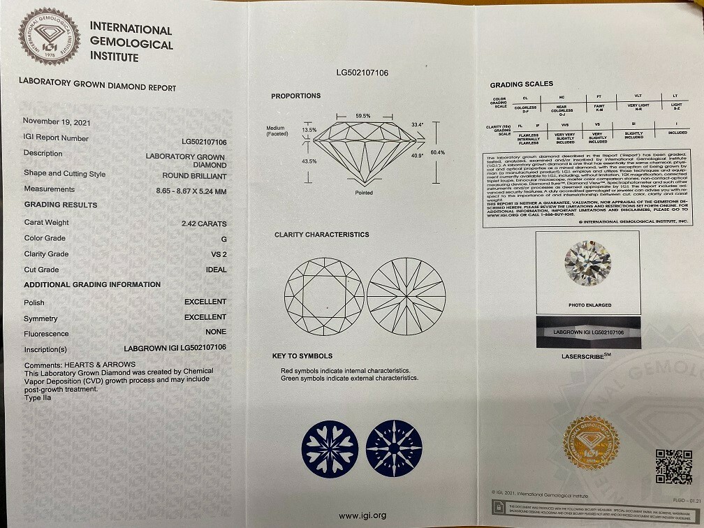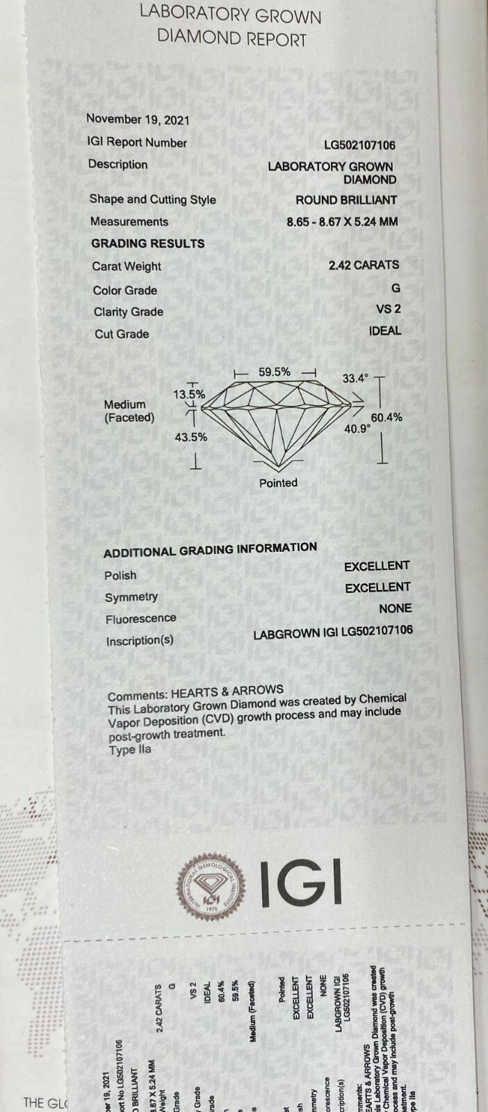 § INSCRIPTION (S): LABGROWN IGI LG502107106