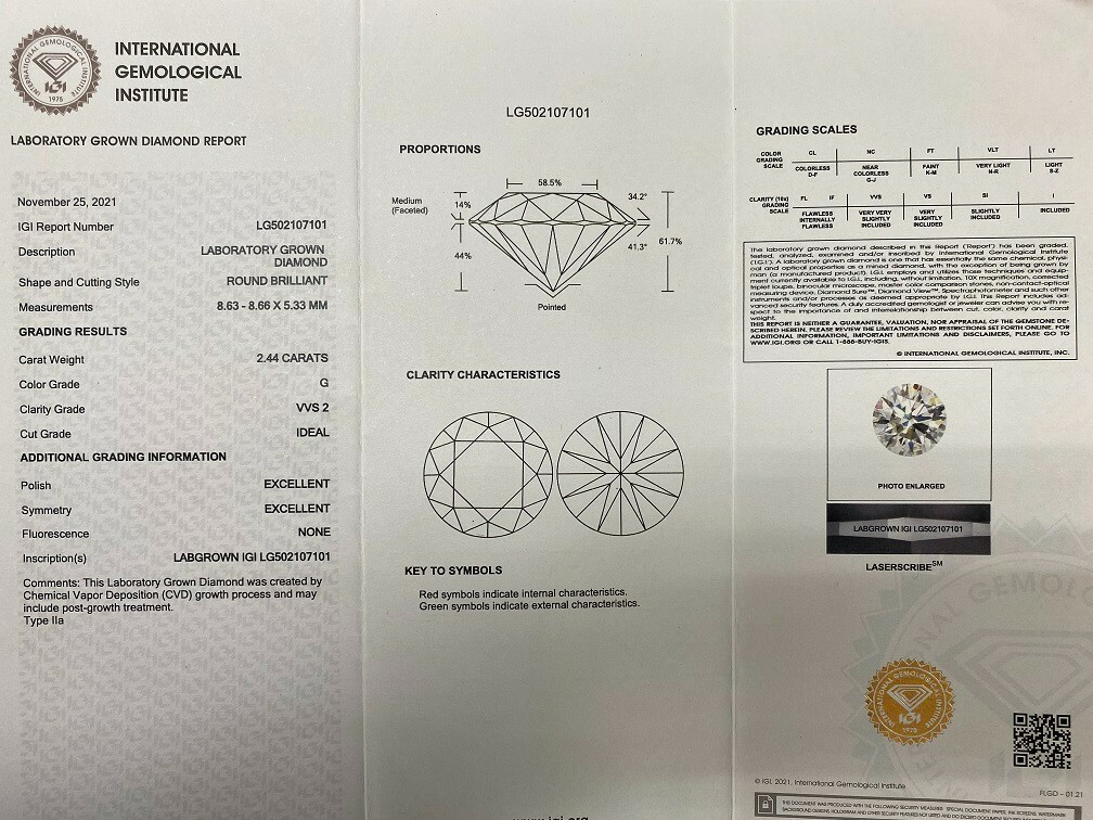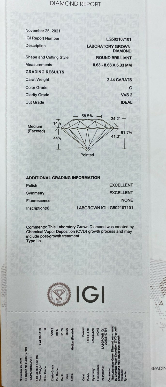 § INSCRIPTION (S): LABGROWN IGI LG502107101