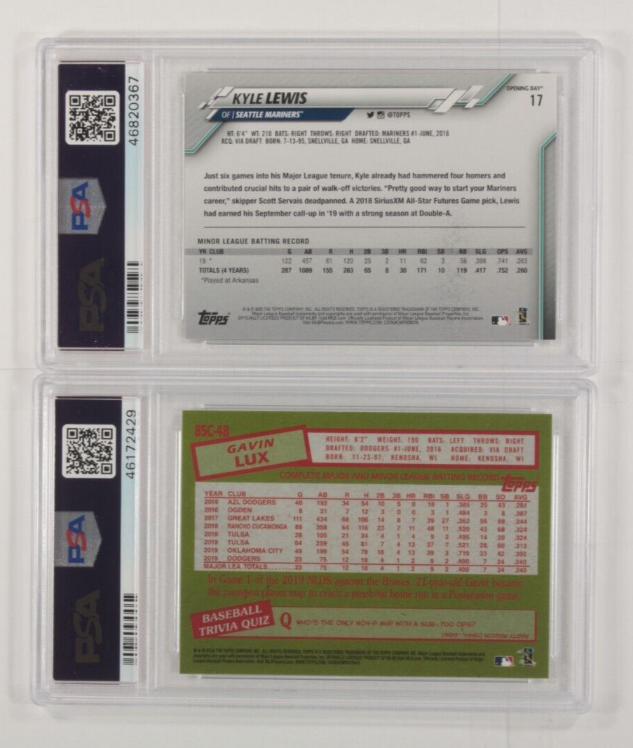 Lot De 2 PSA 10 Gemme MT 2020 Topps Kyle Lewis # 17,Gavin Lux #48 Baseball Cards