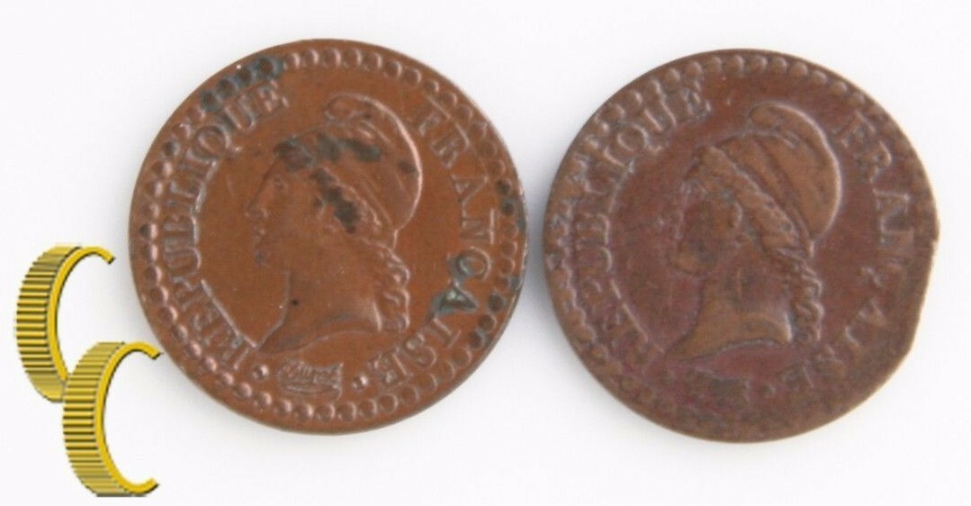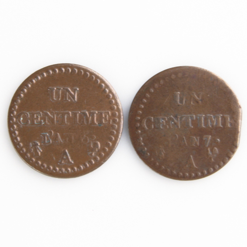 1797a-1798a France Centime Lot (VF-XF, 2 pieces) Paris Mint (L'An 6 7) KM-646