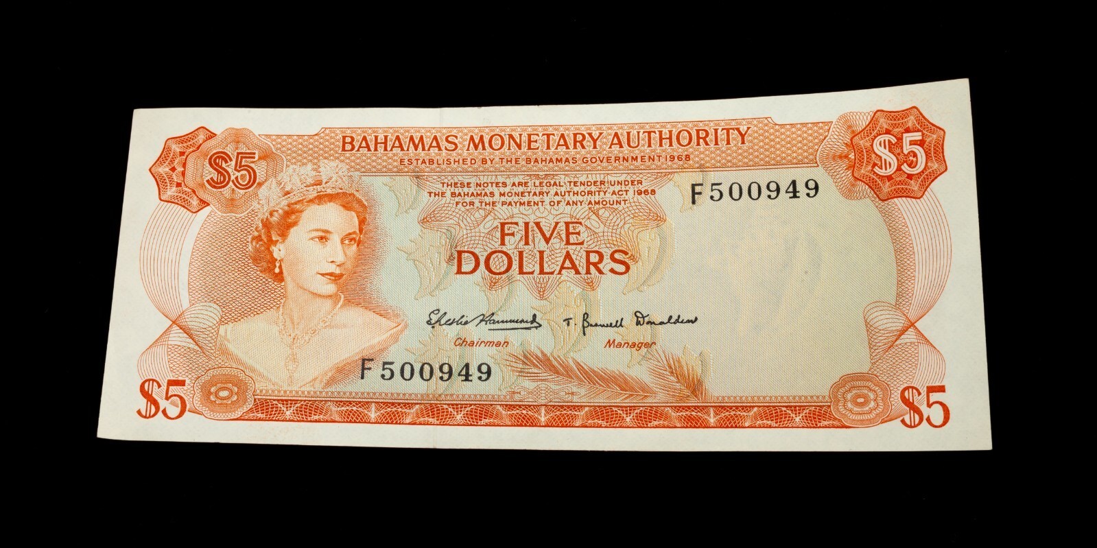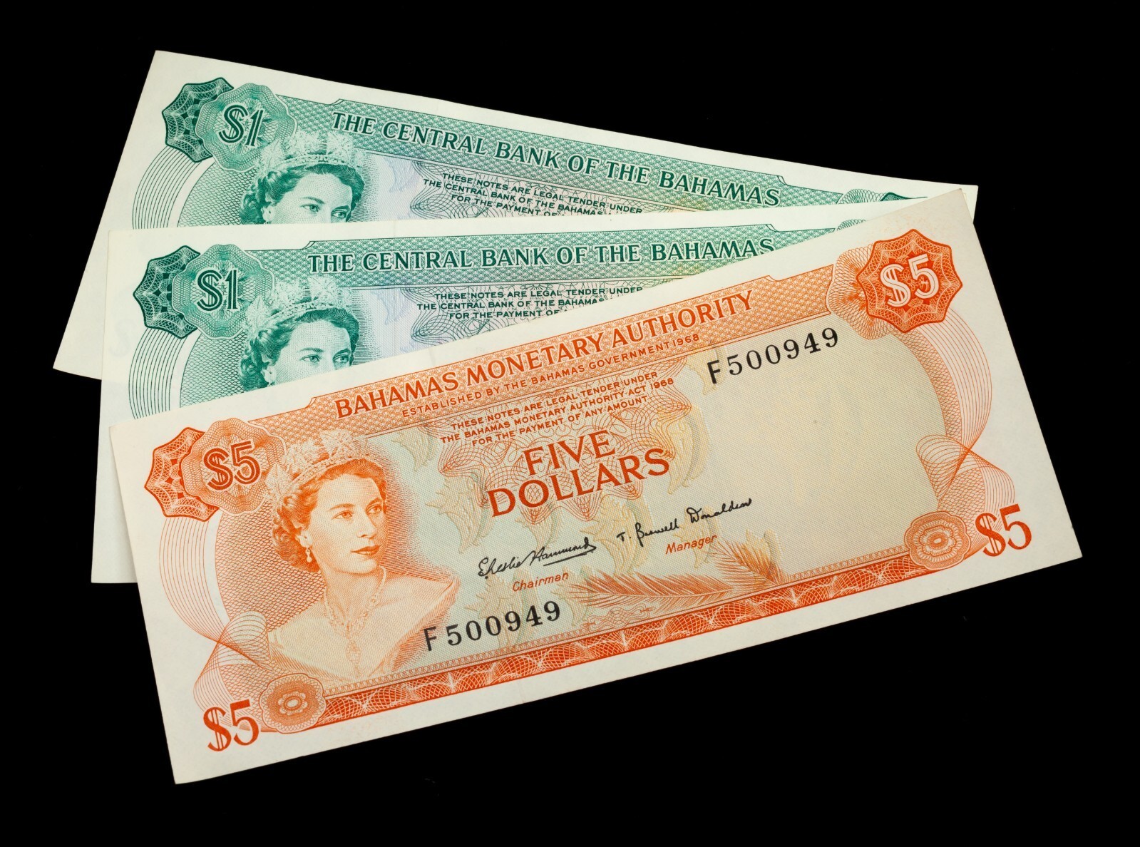 1974 Bahamas 2 X 1 Dollar & 5 Dollat Banque and similar items
