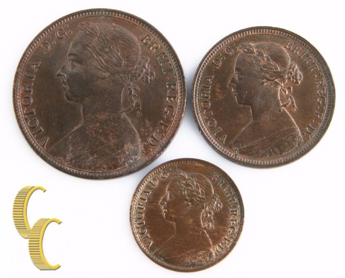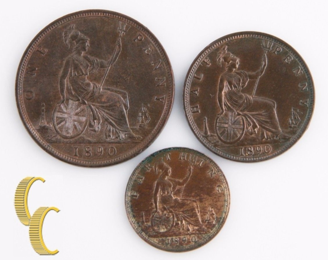 1890 Grande-Bretagne 3 pieces de monnaie (Unc circule UNC) Half Penny Farthing 753 754 755