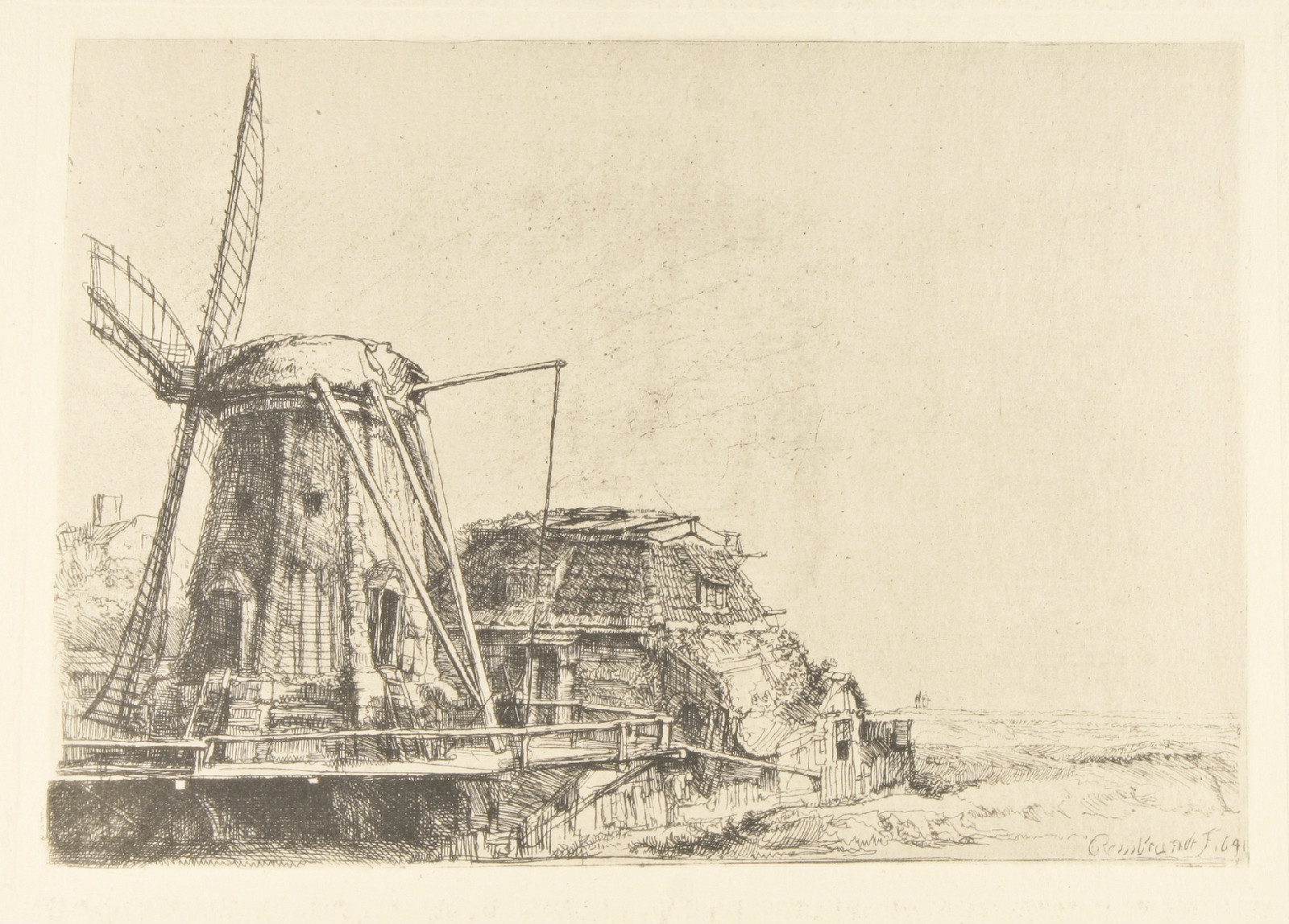 "The Windmill" par Rembrandt, restreinte de la gravure