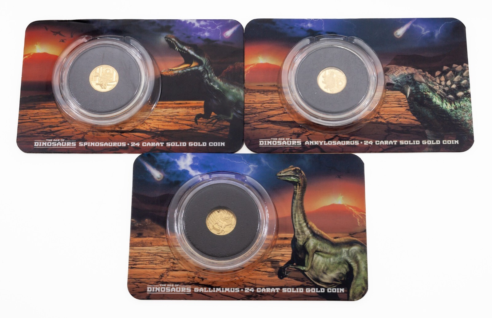 Lot de 3 pieces de dix dollars en or de 0,5 gramme des Îles Salomon 2021, l' ge des dinosaures