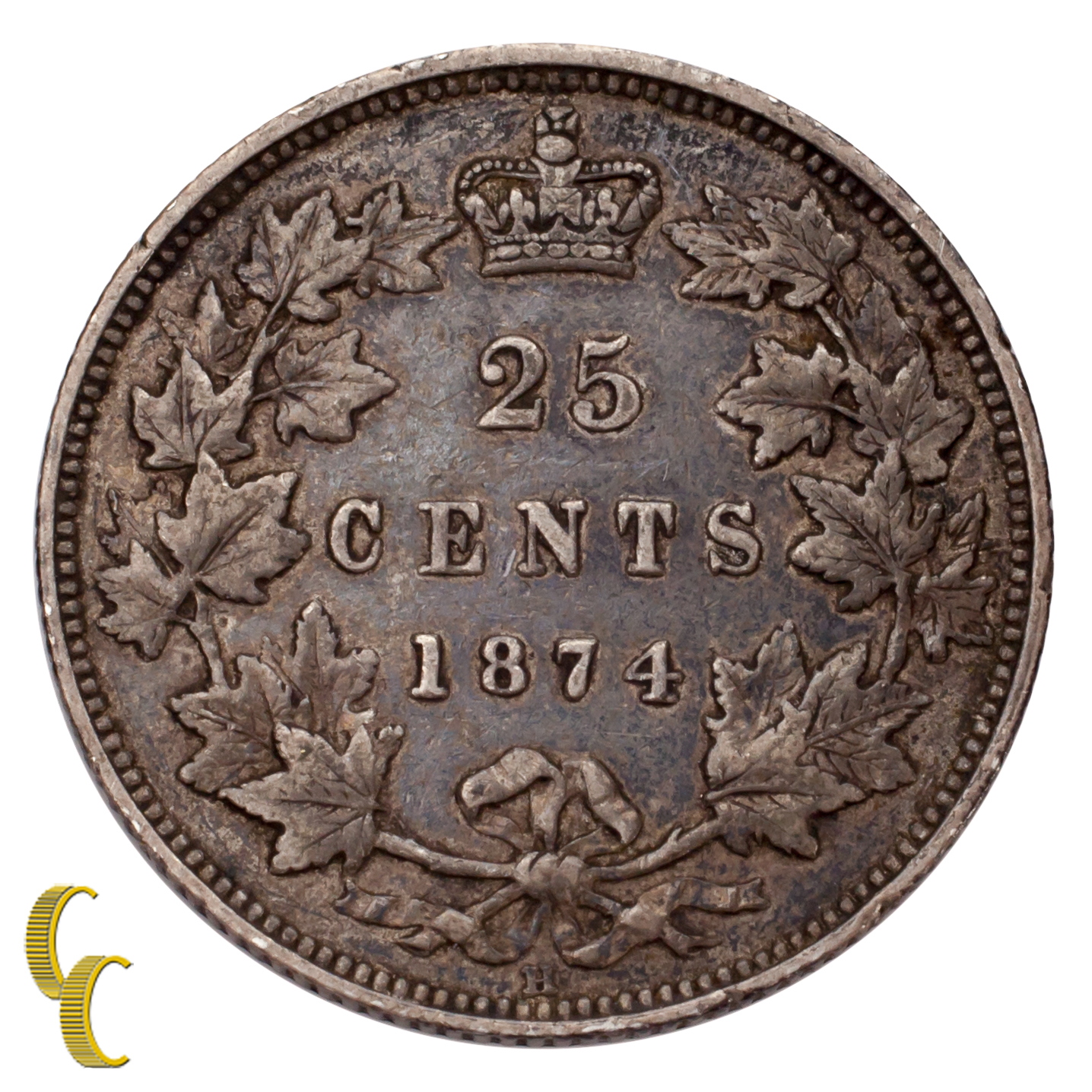 1874-H Canada 25 cents Coin (VF) Tres fin condition