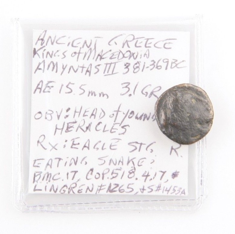 381-369 BC Macédonien Royaume AE16 Pièce (VF) Amyntas III Aigle & Serpent