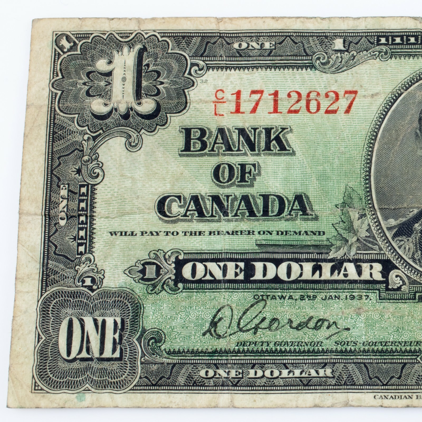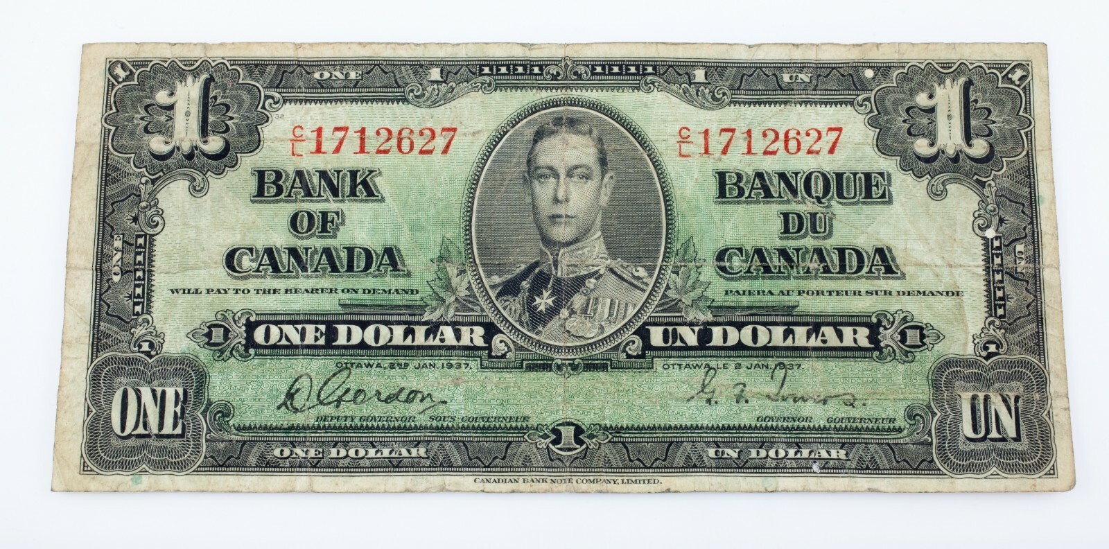 1937 Banque du Canada un billet d'un dollar