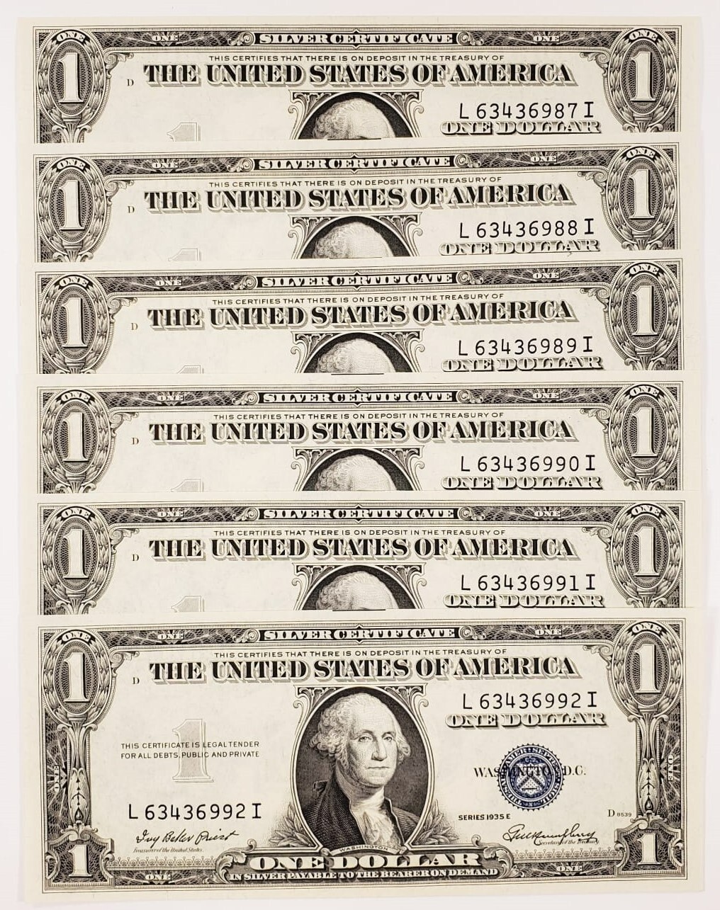 Plein De 6 Consécutives 1935-E Argent Certificats En Au État Fr #1614