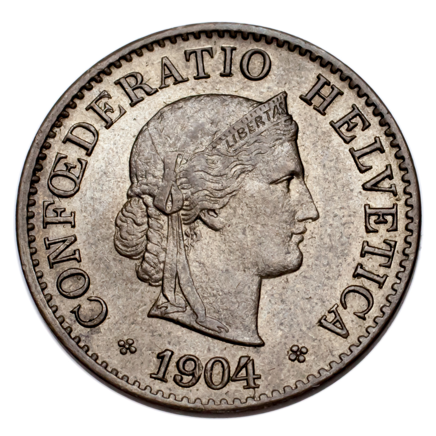 1904 Suisse 5 Rappen Coin (a propos de non circule, Condition AU) KM # 26