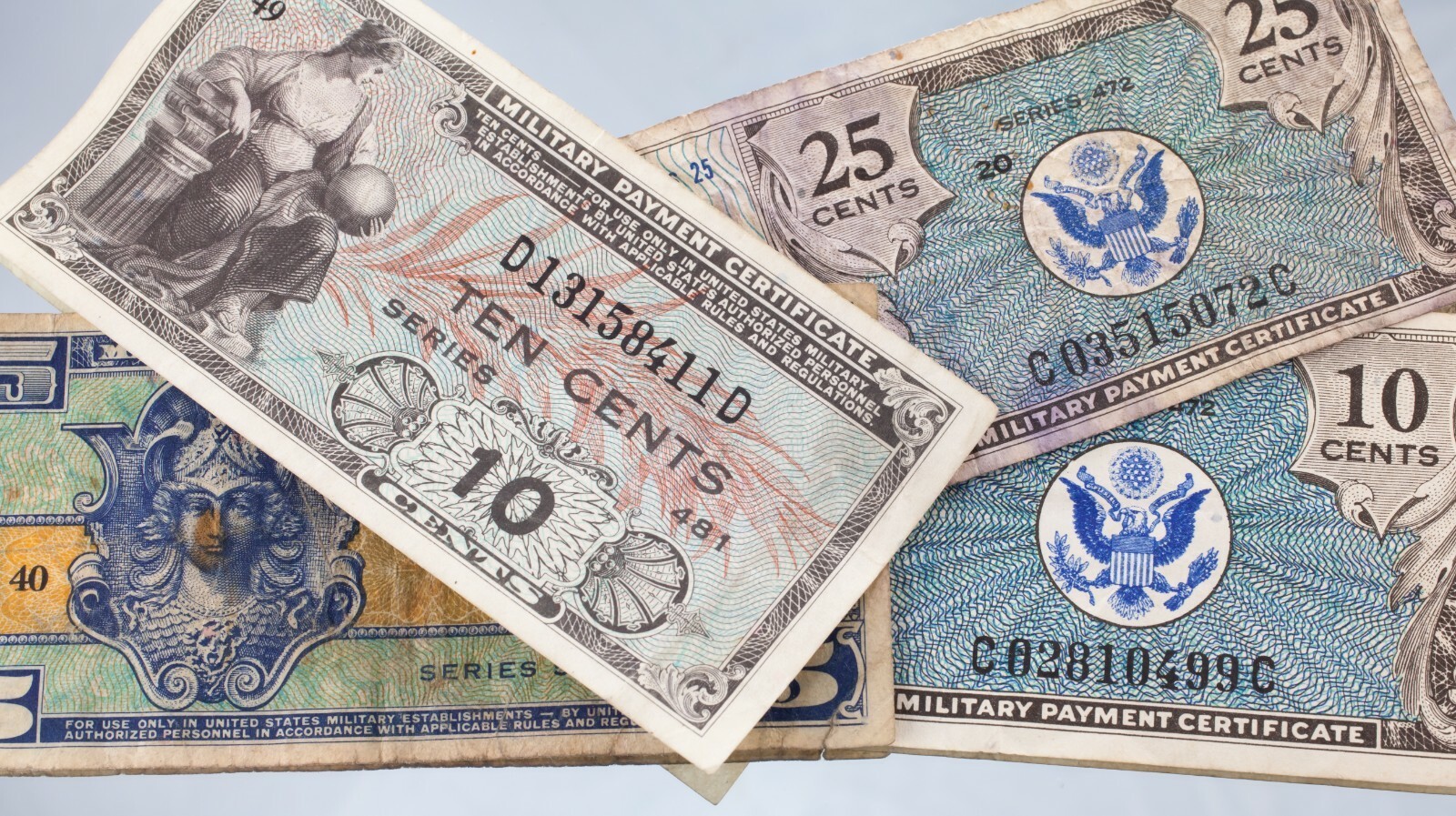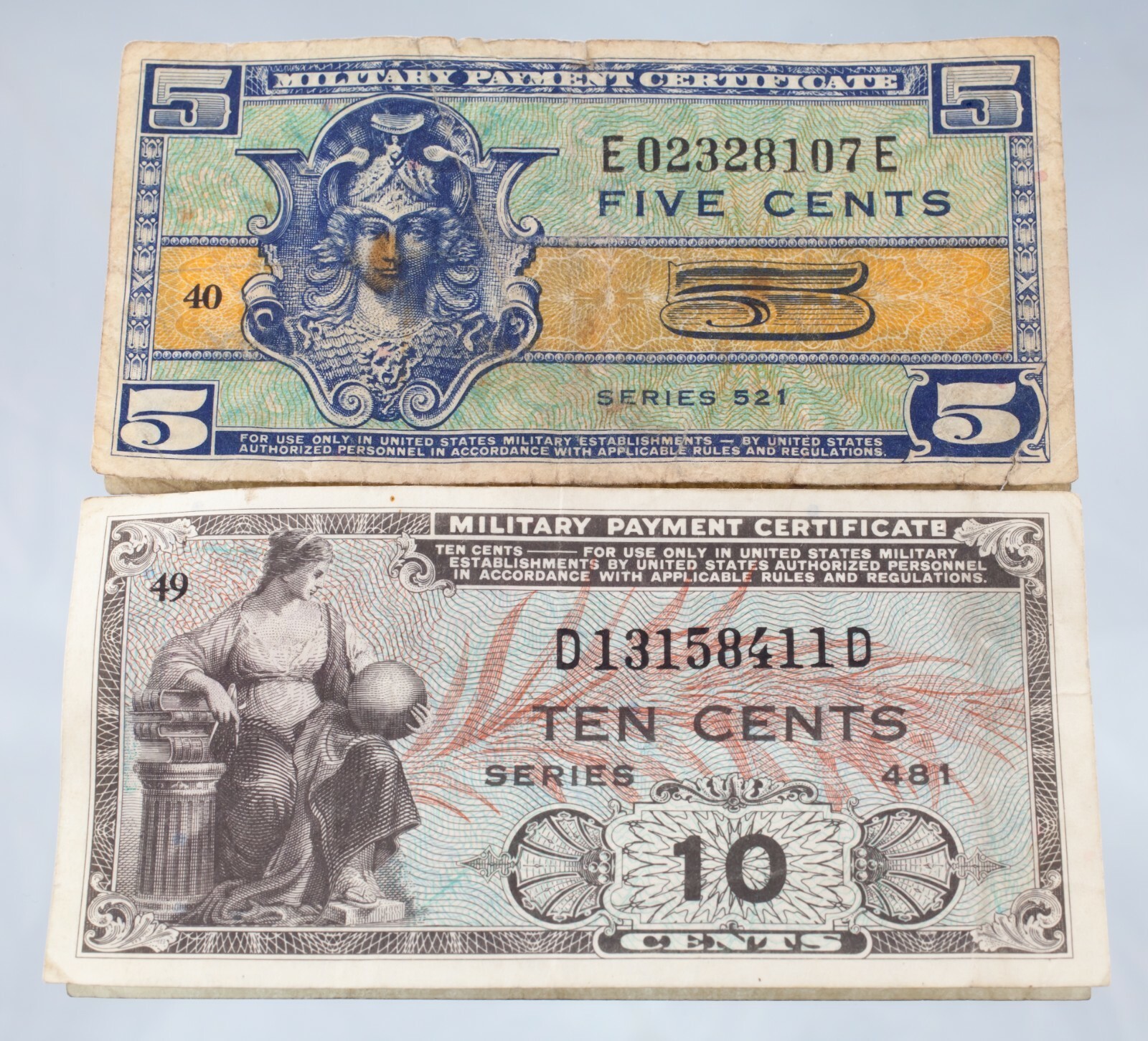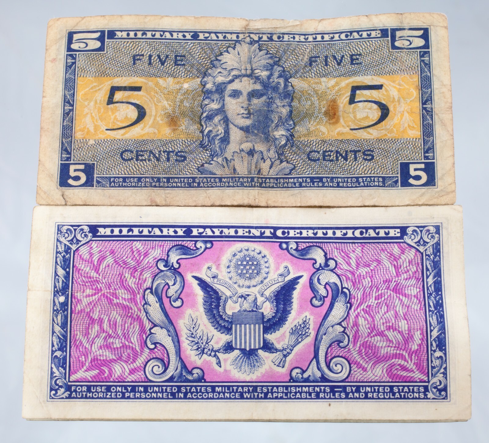 Lot de 4 certificats de paiement militaire americain (5c - 25c, amende - Condition XF)