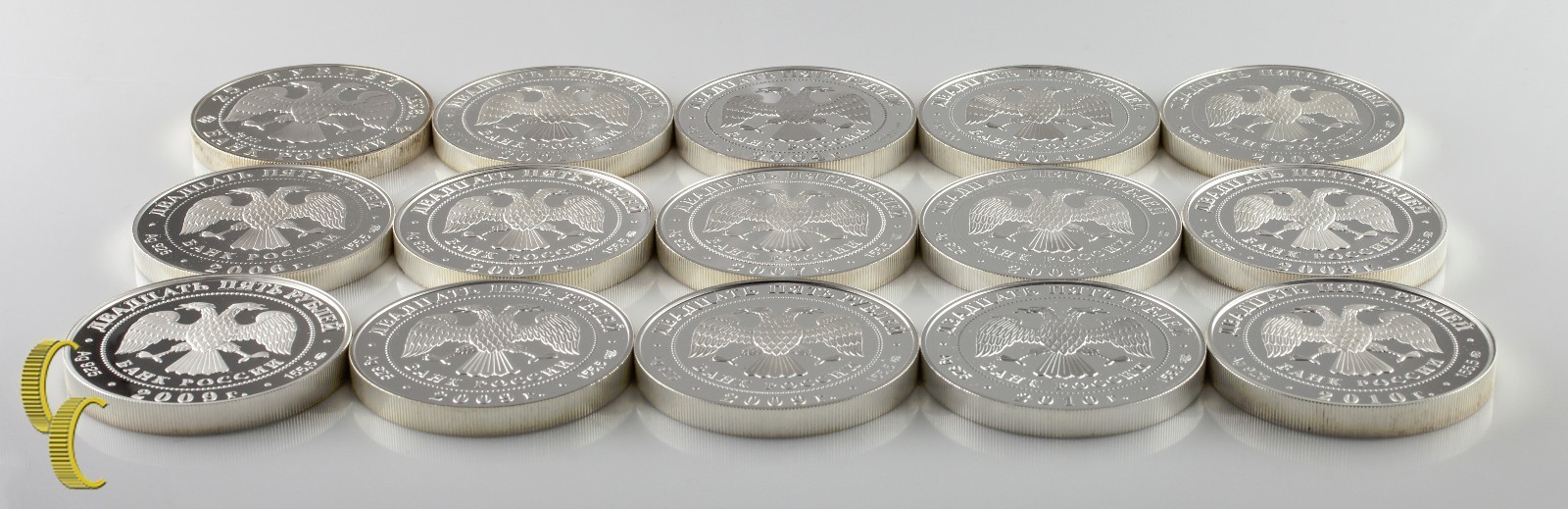Lot de 15 5 oz. Russe 25 Roule Rounds Silver Silver 1996 - 2010 Proof