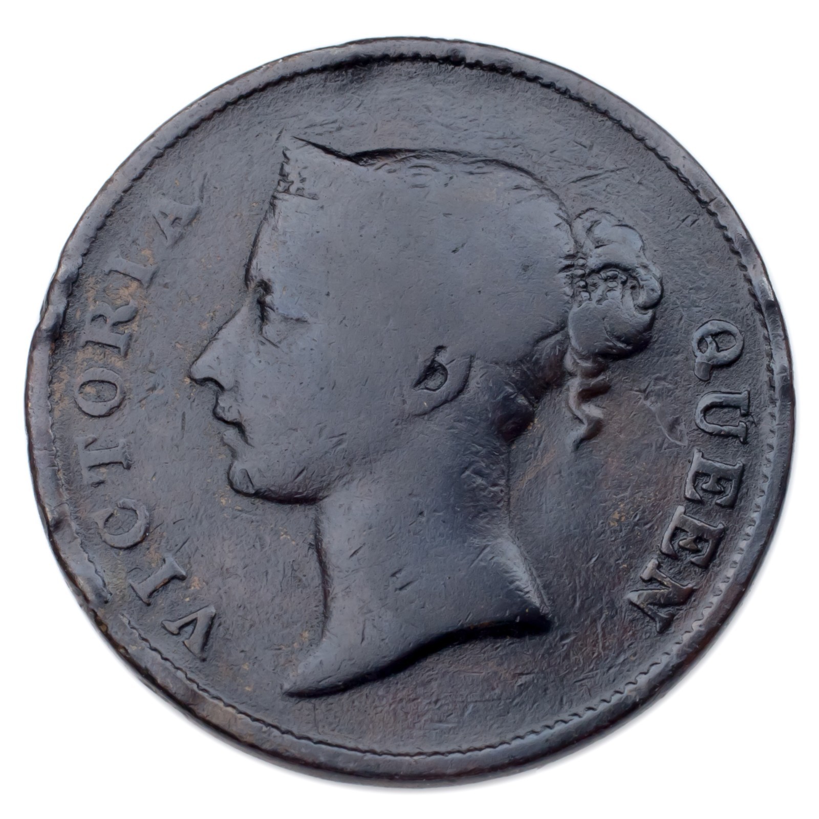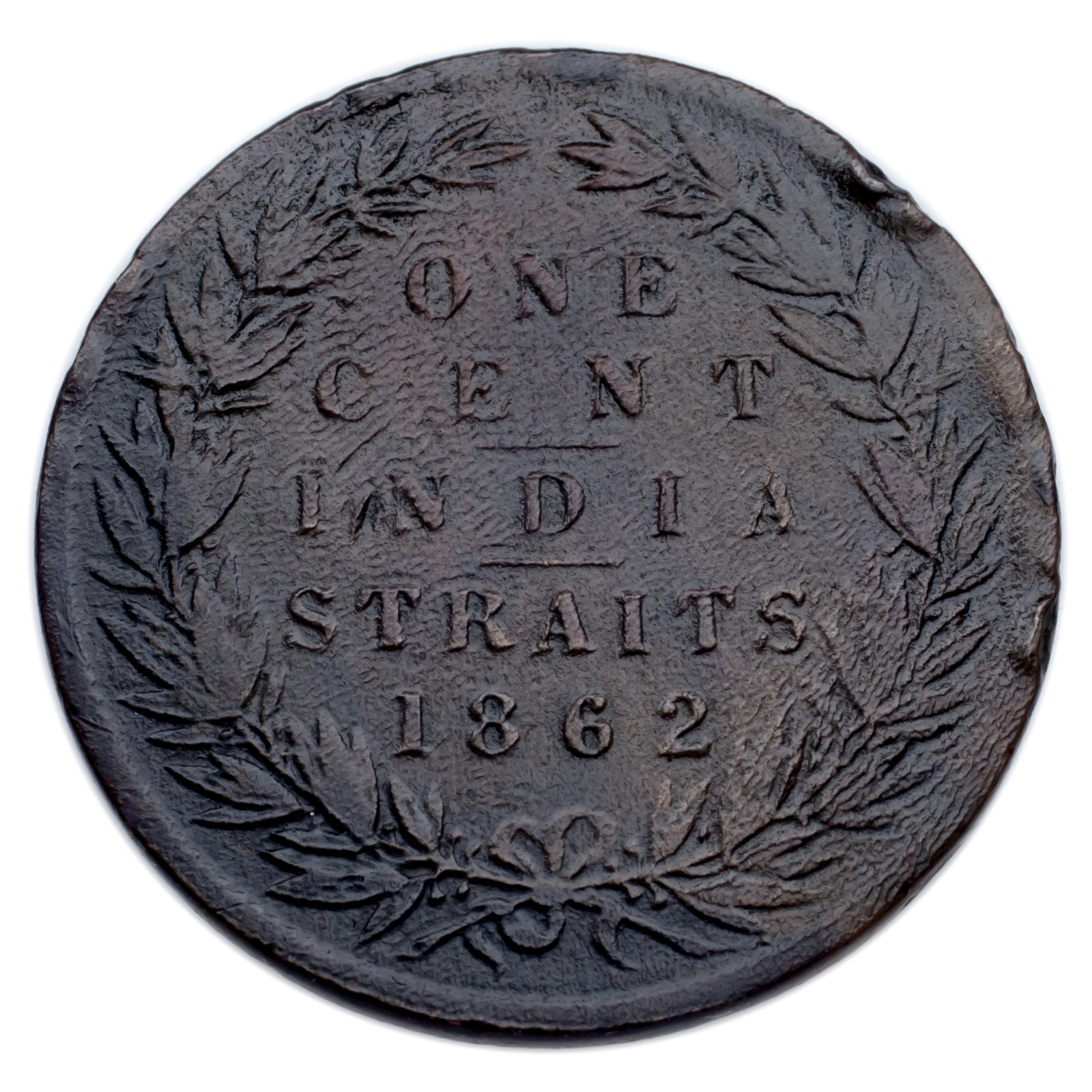 1862 Straits Settlements Cent Coin (tres fin, condition VF) km # 6