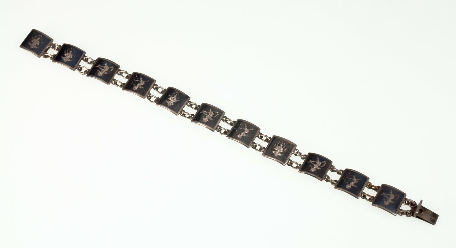 Vintage Thai Argent Siam Niello Émail Panneau Bracelet 7 "