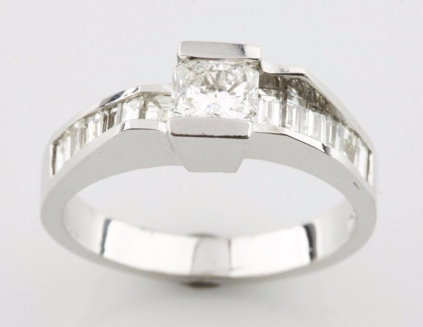 1.05 Carat Radiant Et Diamants Baguette 18k or Blanc Fiançailles Taille Bague 6
