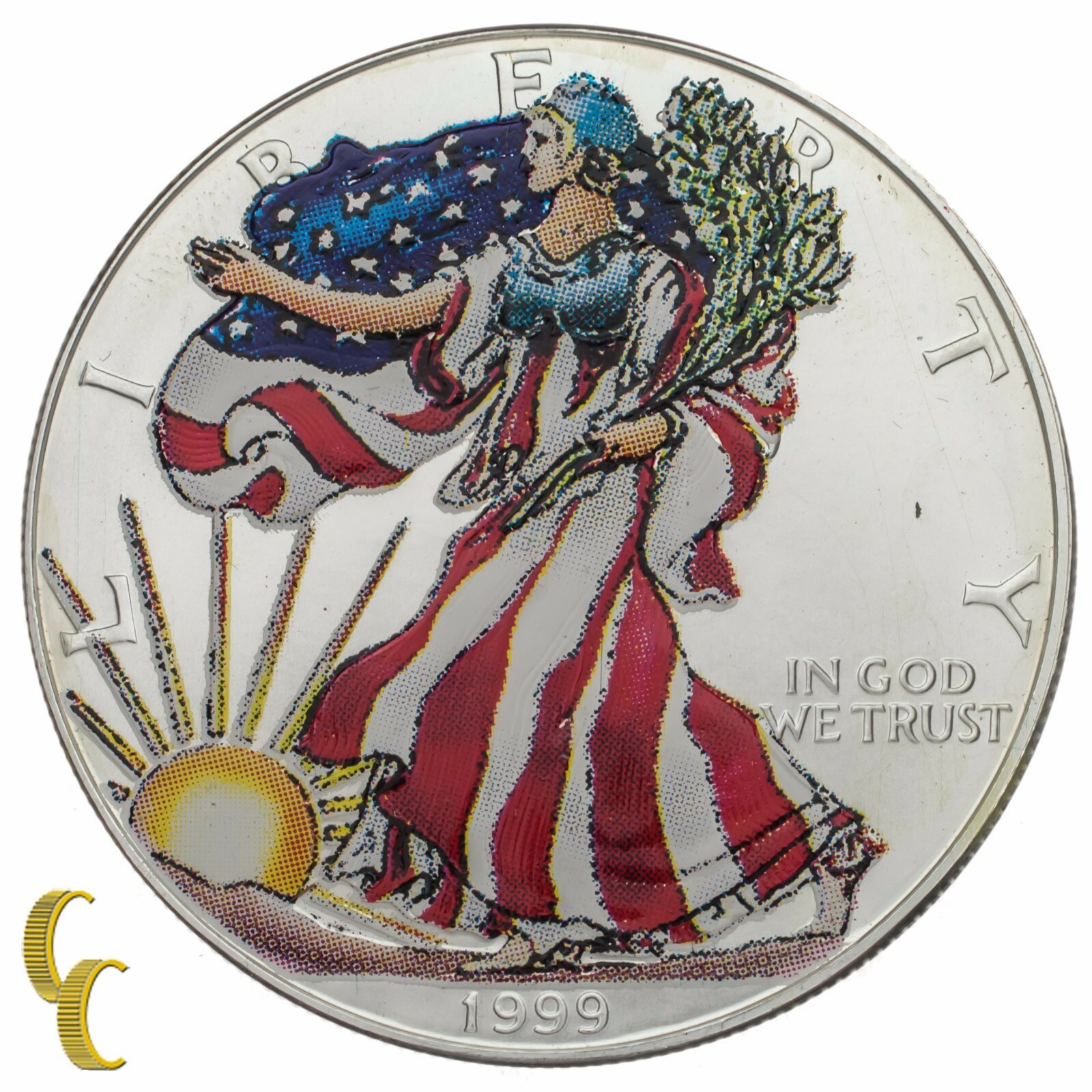 1999 Peint Marche Liberty Argent 1oz American Eagle W / Boîte & COA