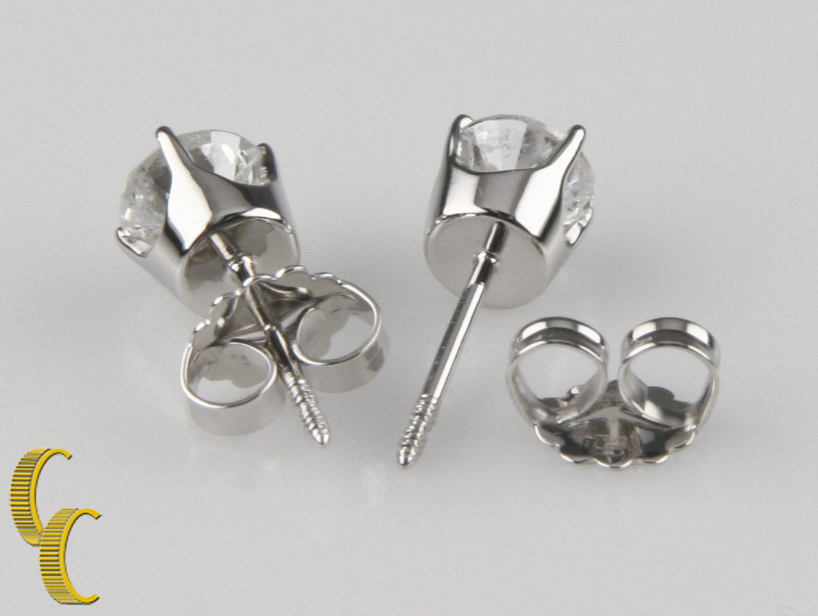 Diamant Rond 1.00 Carat 14k or Blanc Boucles D'Oreilles W/Papillon Arrière
