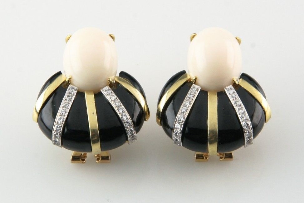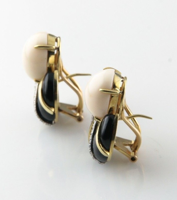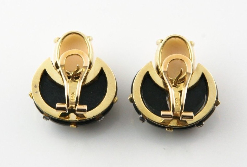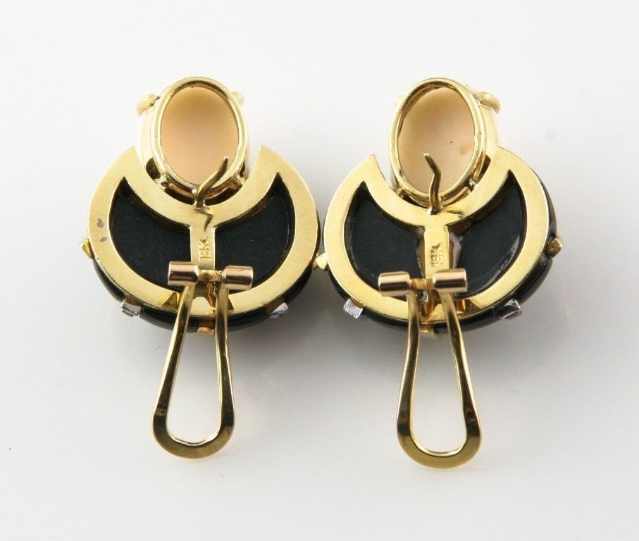 Mesdames Plastique noire et chalcedoine en or jaune 18K et boucles d'oreilles en diamant