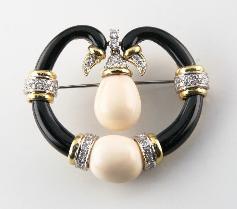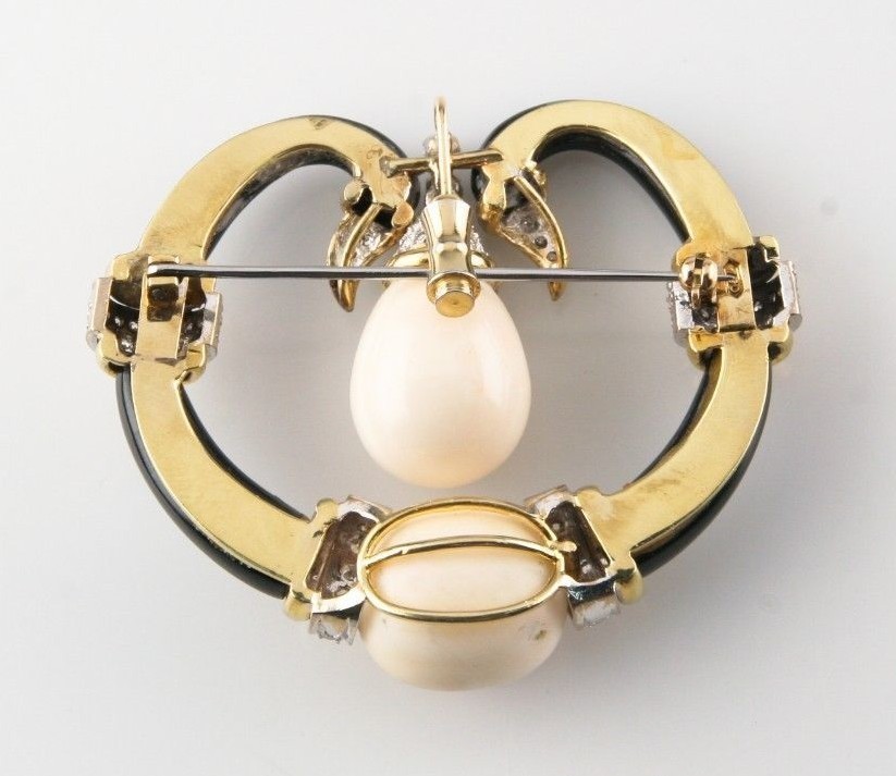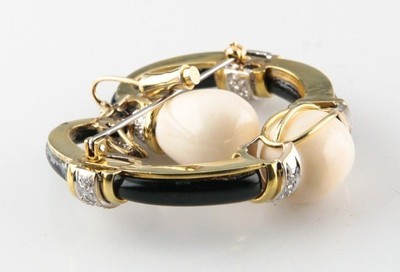 Mesdames Black Plastique et chalcedoine en or jaune 18K et broche de diamant