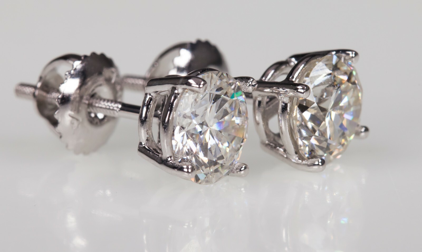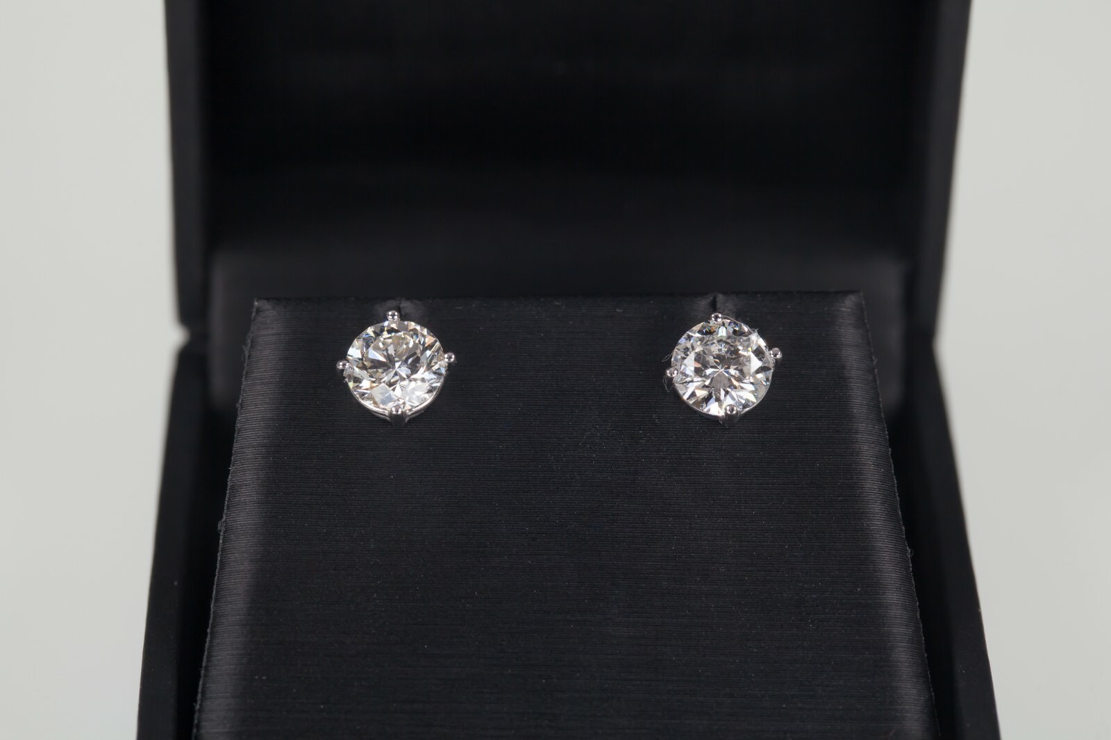 Magnifique 2,10 CT Round Diamond Stump Boucles en or 14 carats en or blanc H-Si2