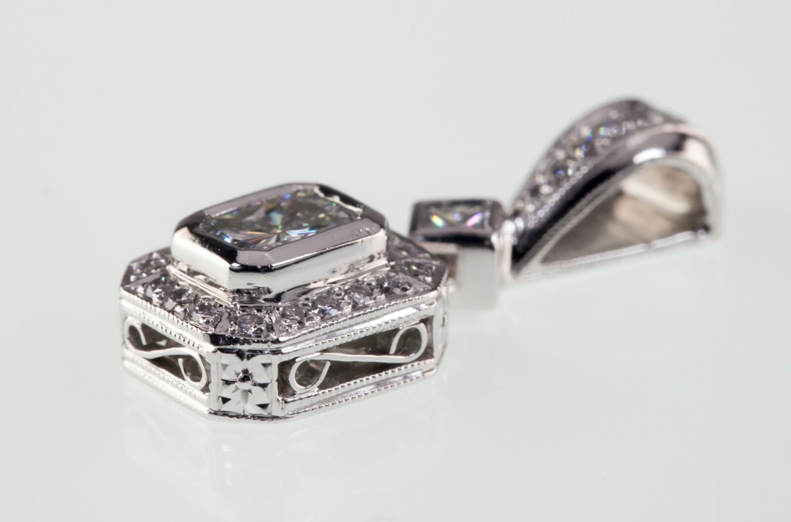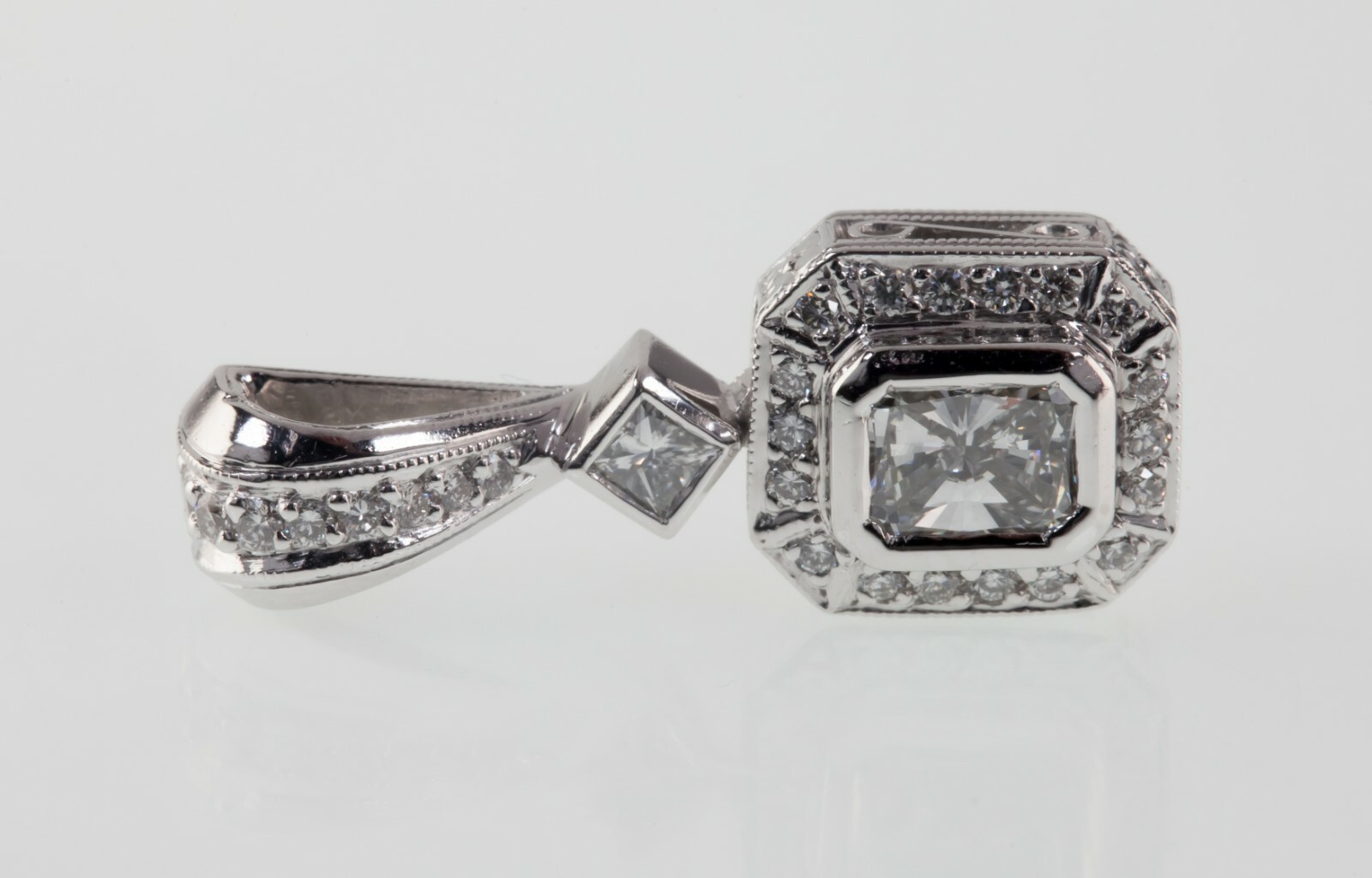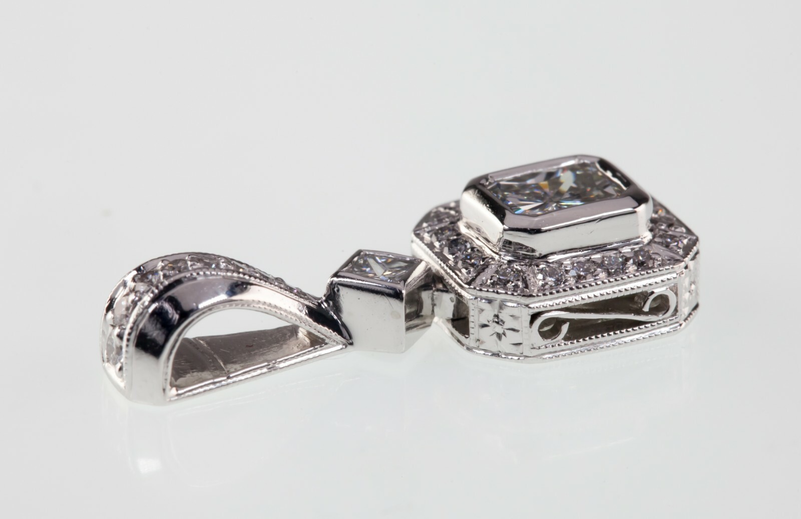 Michael Beaudry 900 Platinum Radiant Cut Diamond Solitiare Pendant TCW = 0,55 CTS