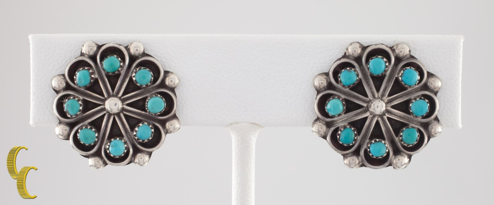 Argent Sterling Turquoise Sunburts avec Clip Boucles D'Oreilles Par R. Dishta
