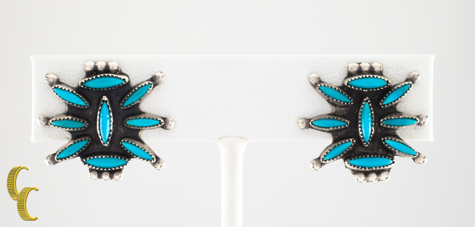 Boucles d'oreilles a clip-on de Sterling Silver Turquoise Sunburst Beautiful!