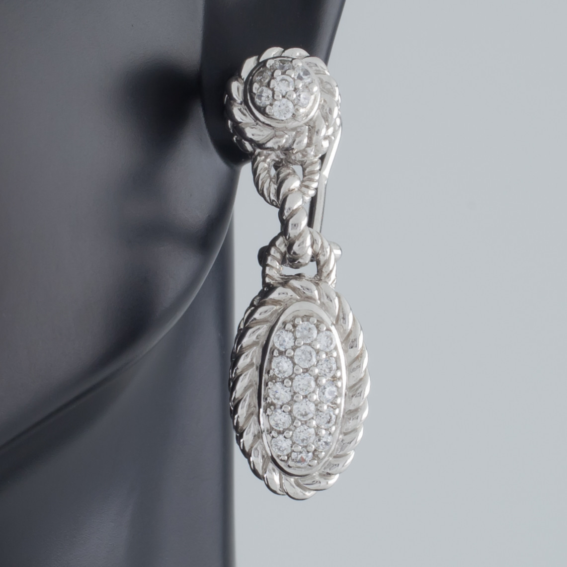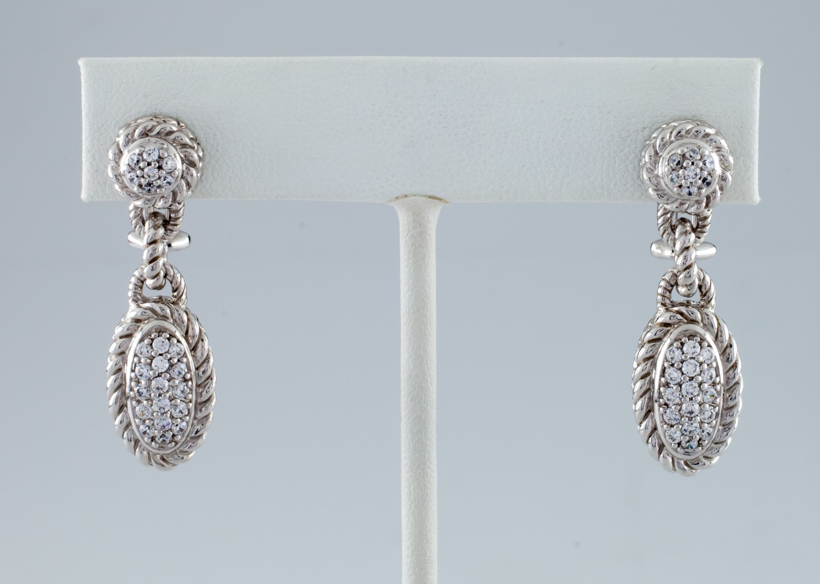 Judith Ripka Argent Massif Boucles D'Oreilles Pendantes W/Zircone Accents