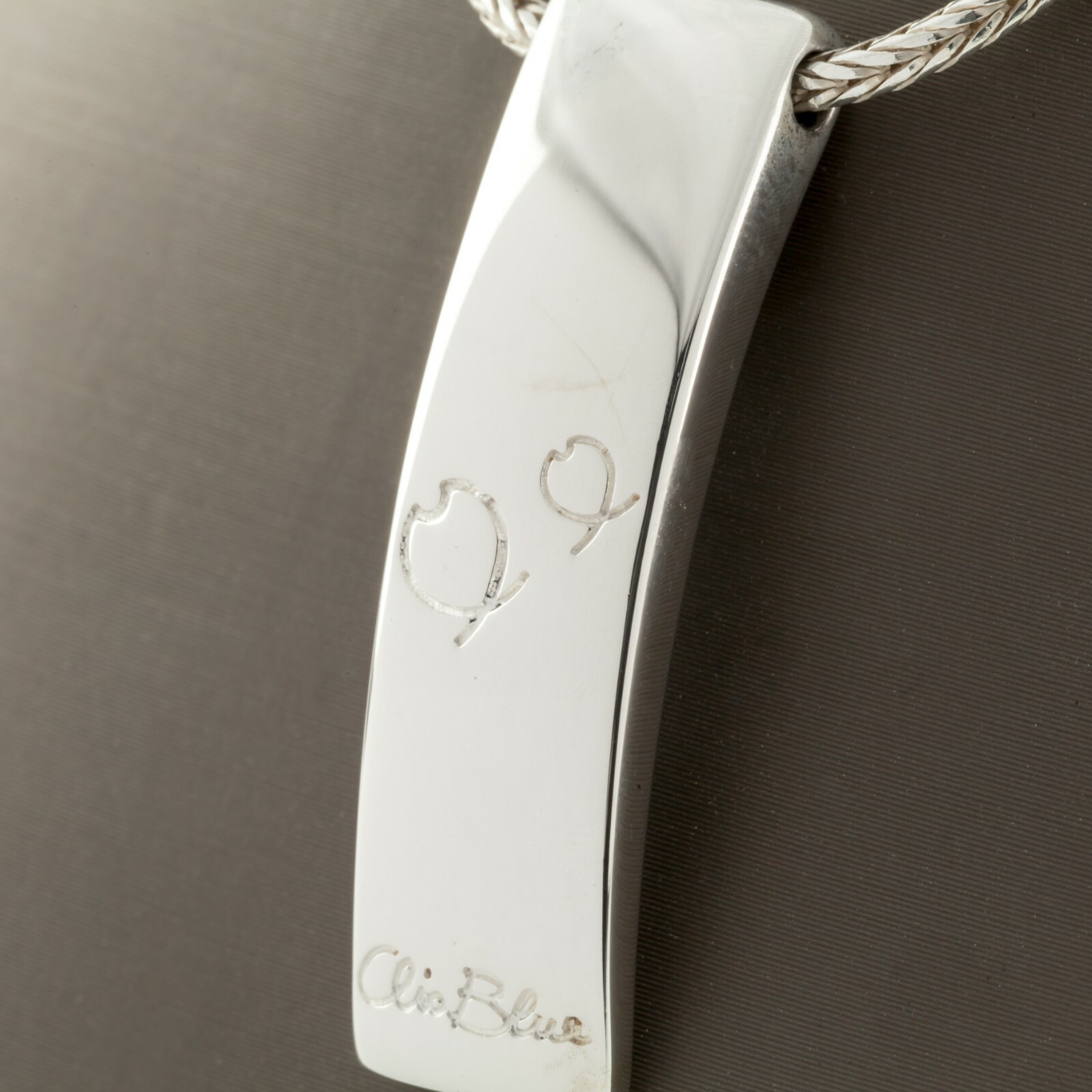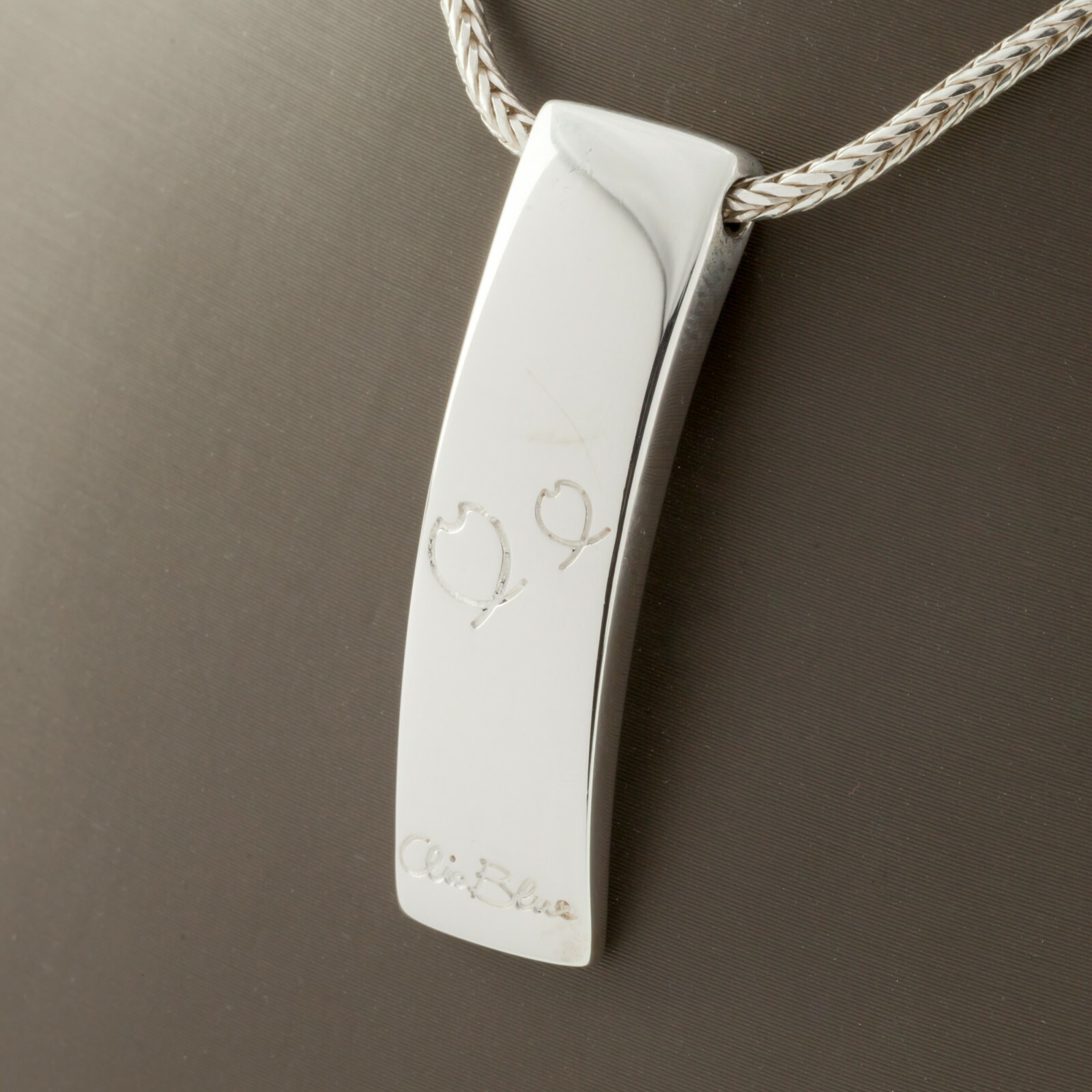 Comprend un pendentif a barres incurve (35 mm de long x 10 mm de large)