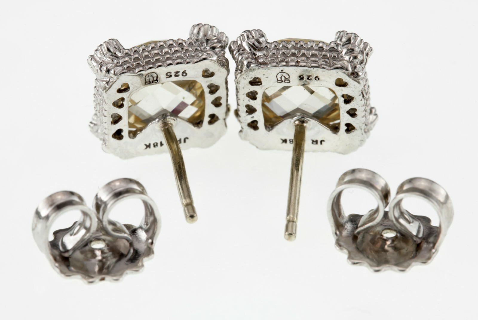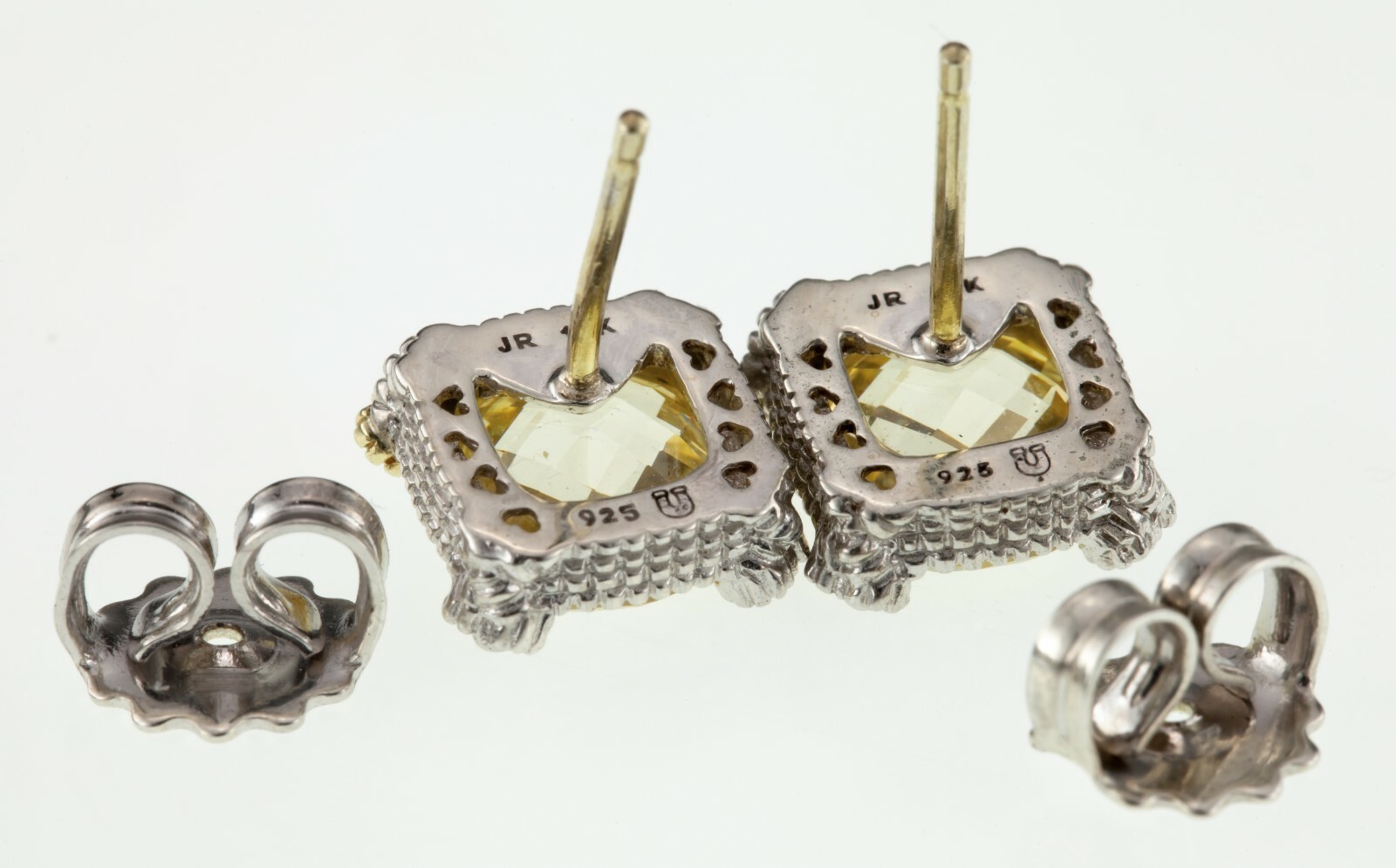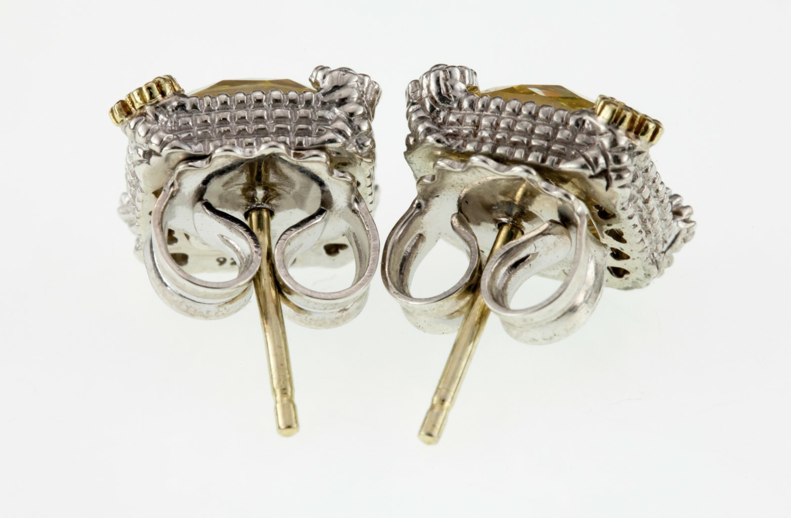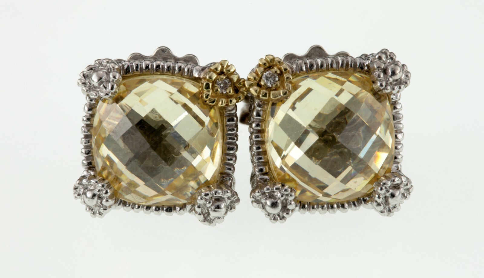 Judith Ripka Argent Sterling Et 18k or Jaune Canari Quartz Boucles D'Oreilles