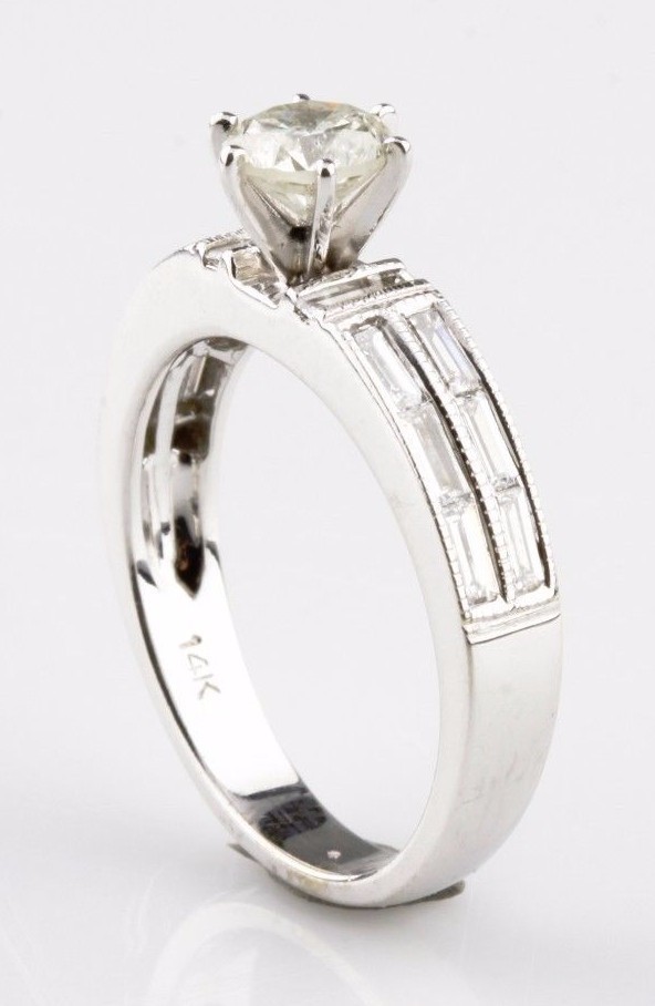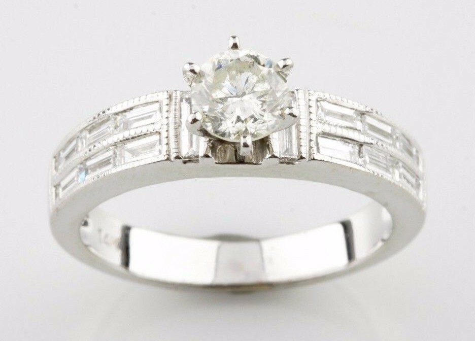 14 carats d'or blanc rond diamant engagement Unity Taille 6,75, TDW = 1,34 ct