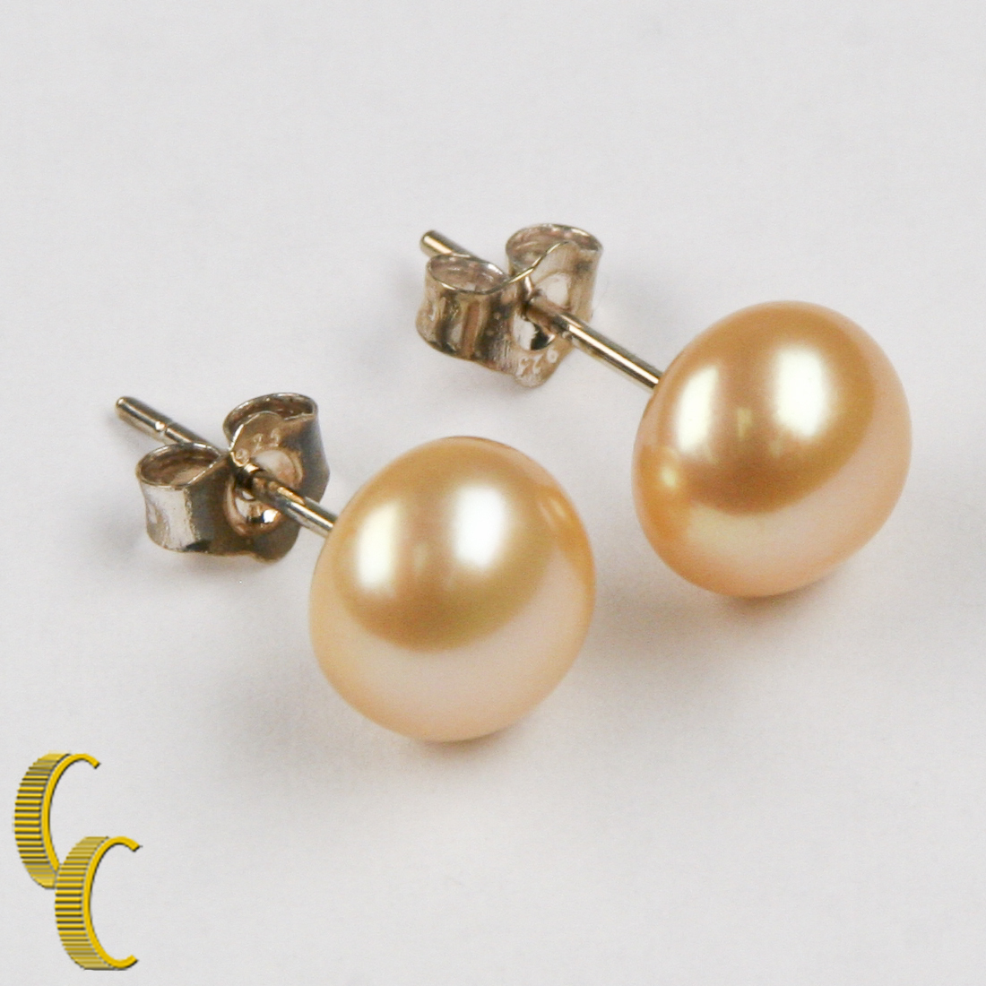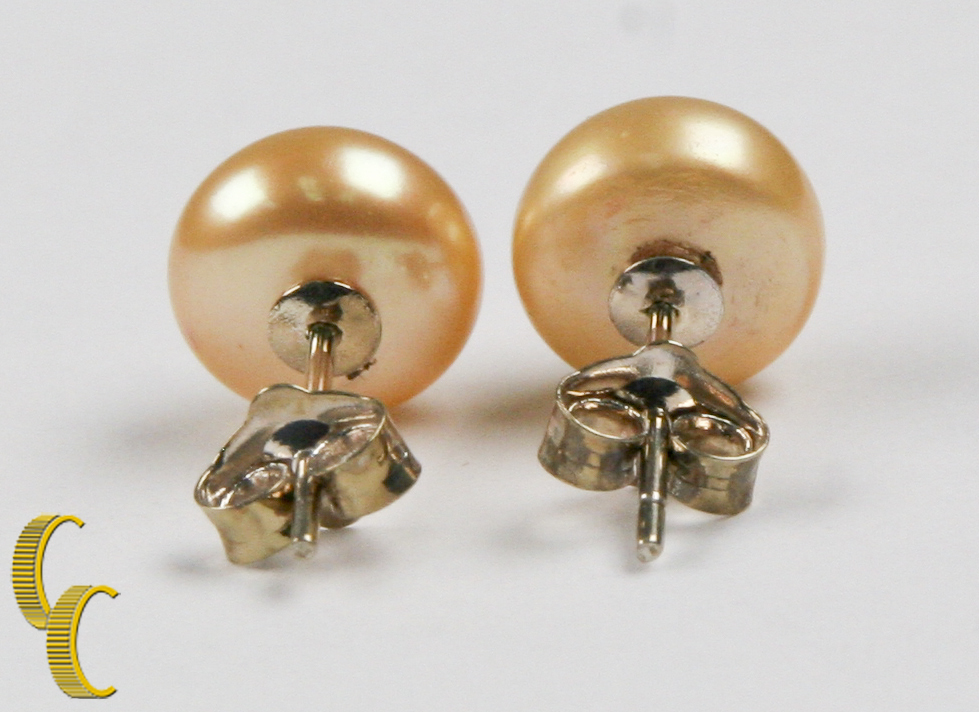 Argent Sterling Perlescent Jaune Perle Boucles D'Oreilles W/Papillon Arrière