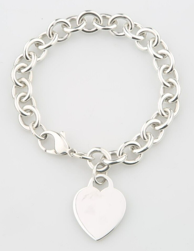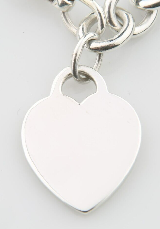 Tiffany Co. Bracelet de charme de tag de coeur vierge en argent sterling 7.75 "