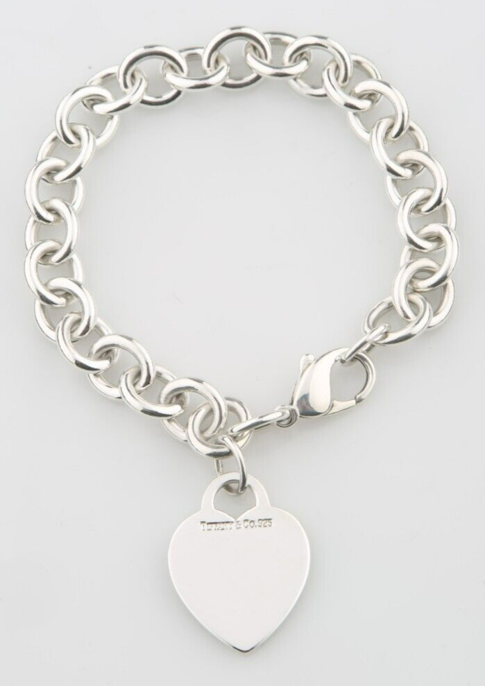Tiffany & Co.Argent Sterling Vierge Coeur Étiquette Breloque Bracelet 7.75 "