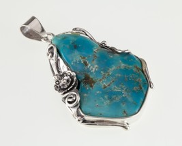 Étonnant Turquoise Argent Sterling Ensemble Pendentif sur Une Floral Cadre