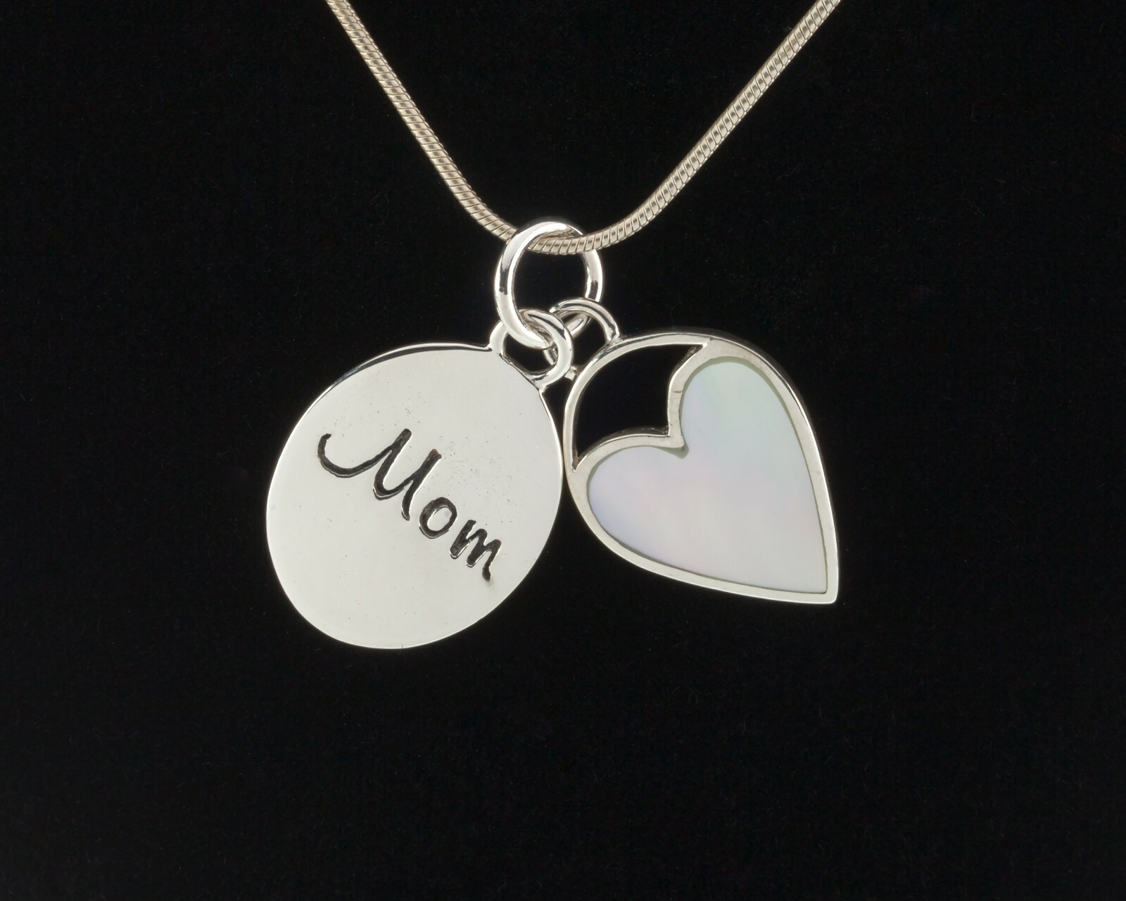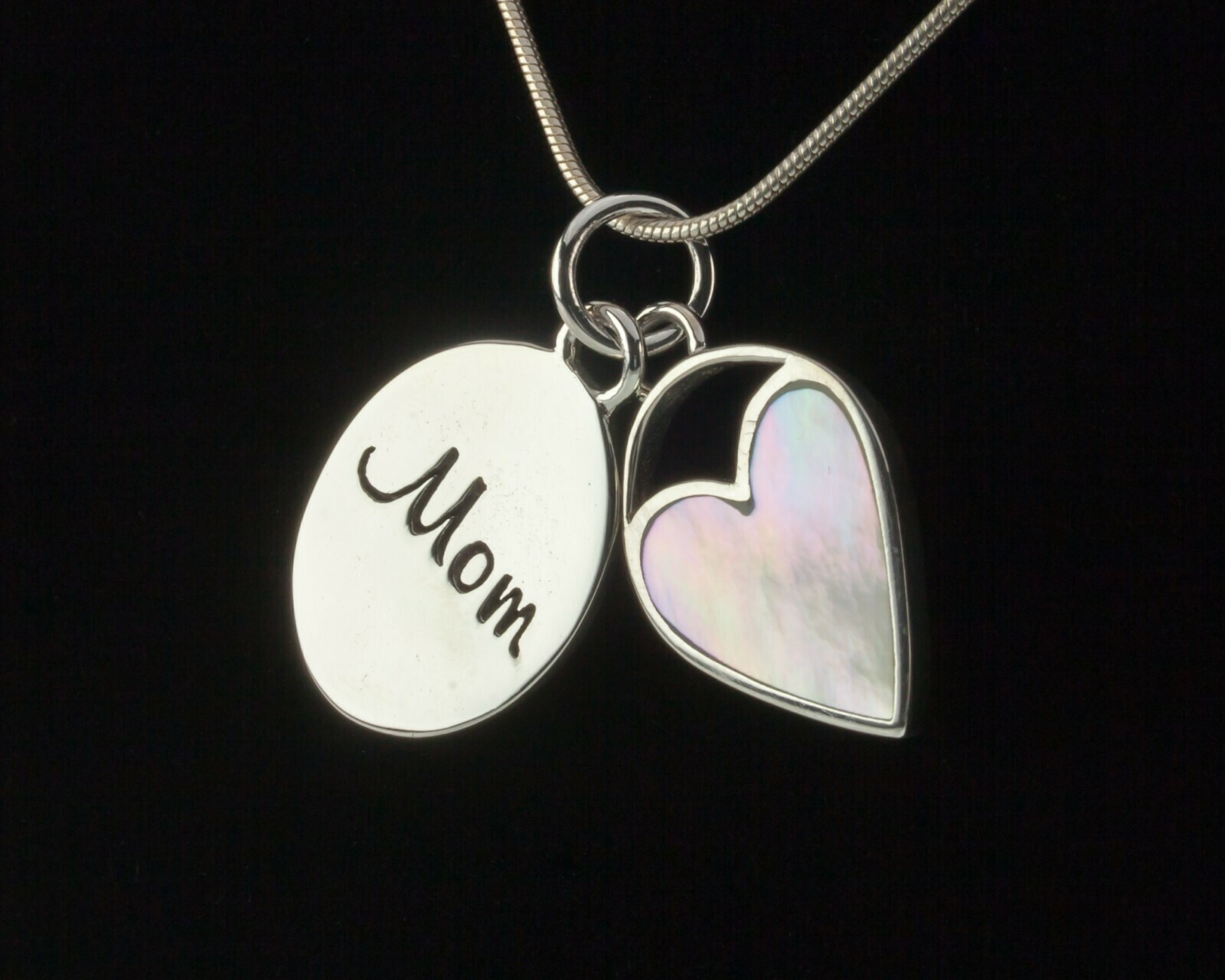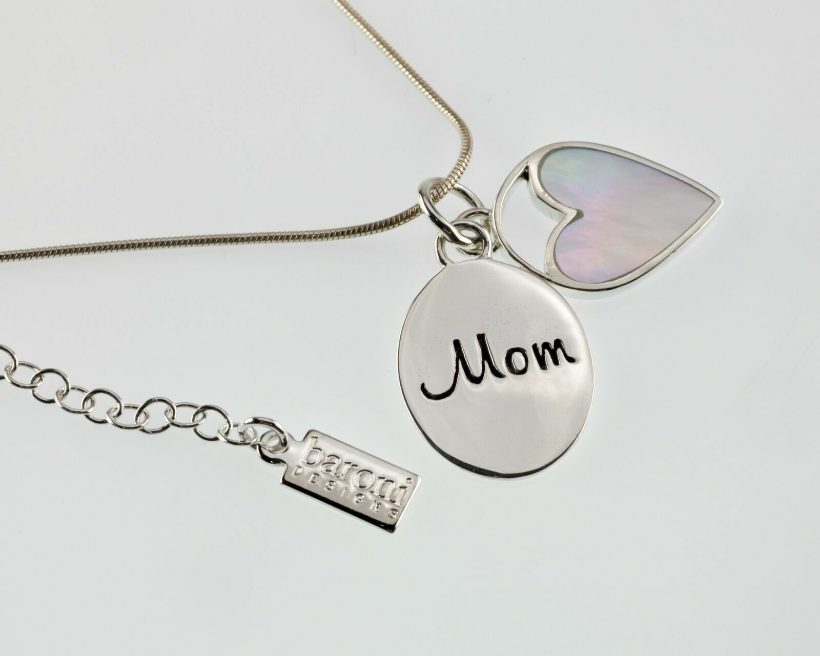 Baroni Argent Sterling Fête des Mères Nacre Pendentif Coeur