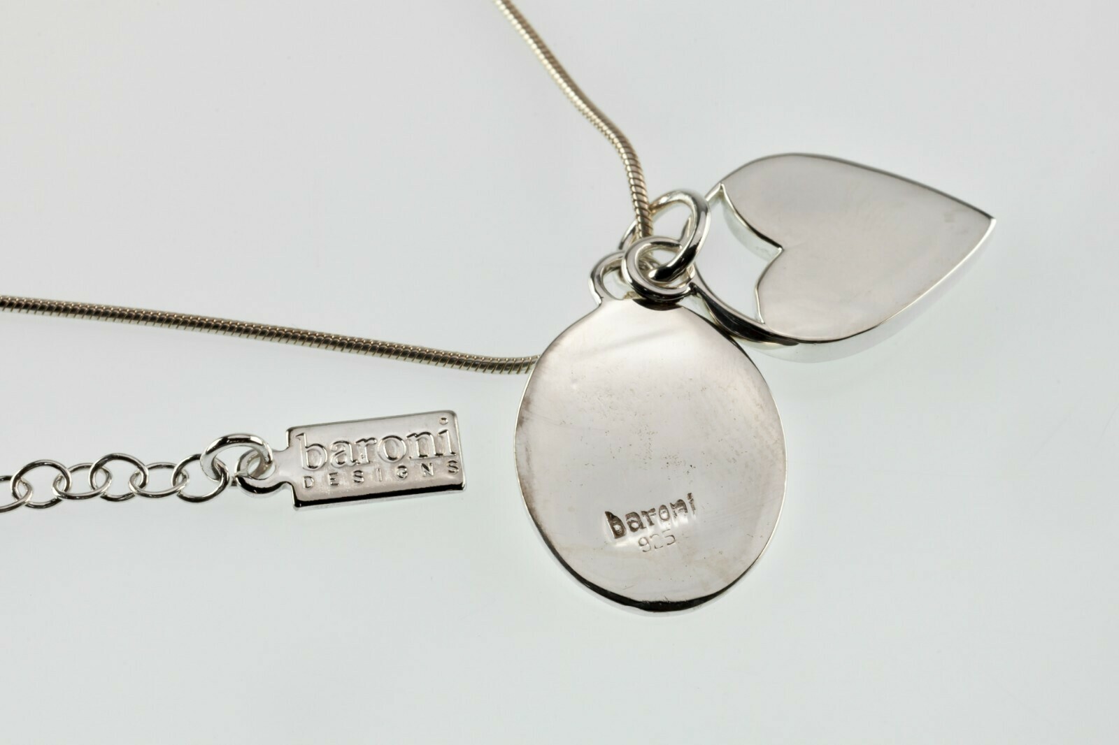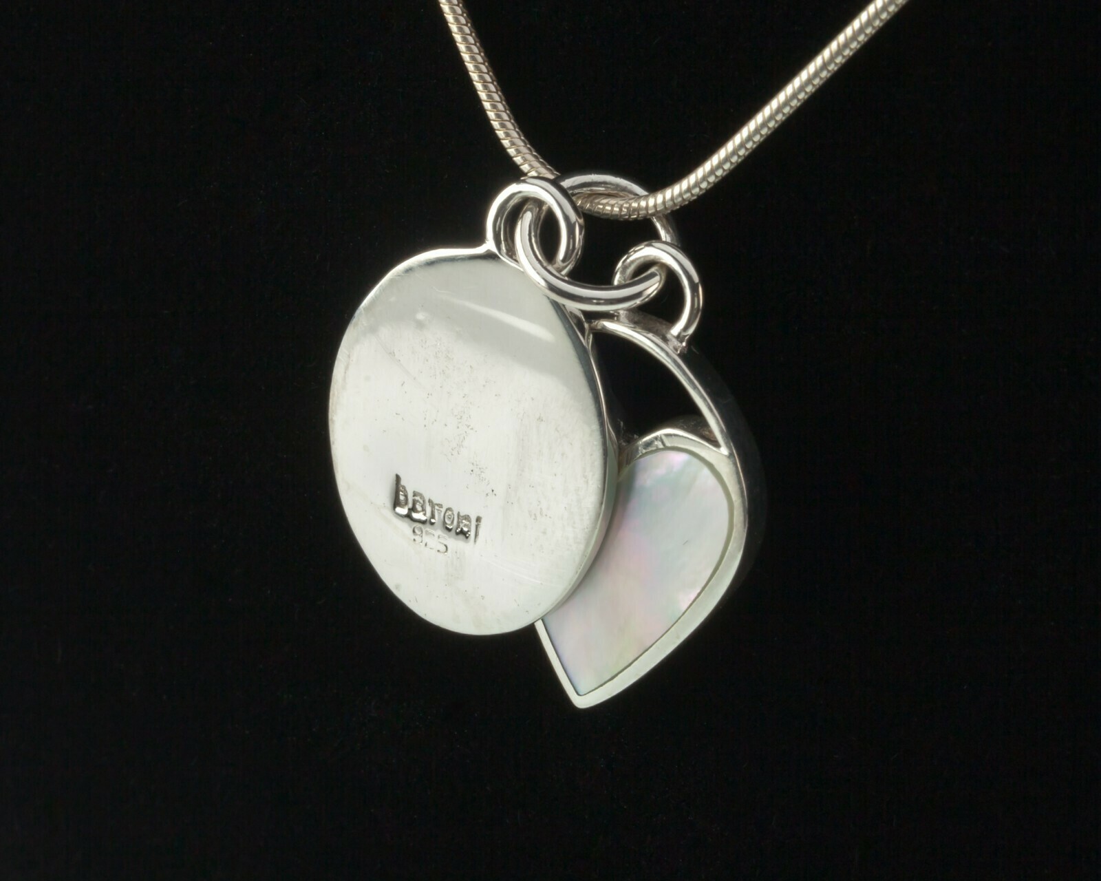 Baroni Sterling Silver Mother's Fay Mother of Pearl Heart Heart Pendant