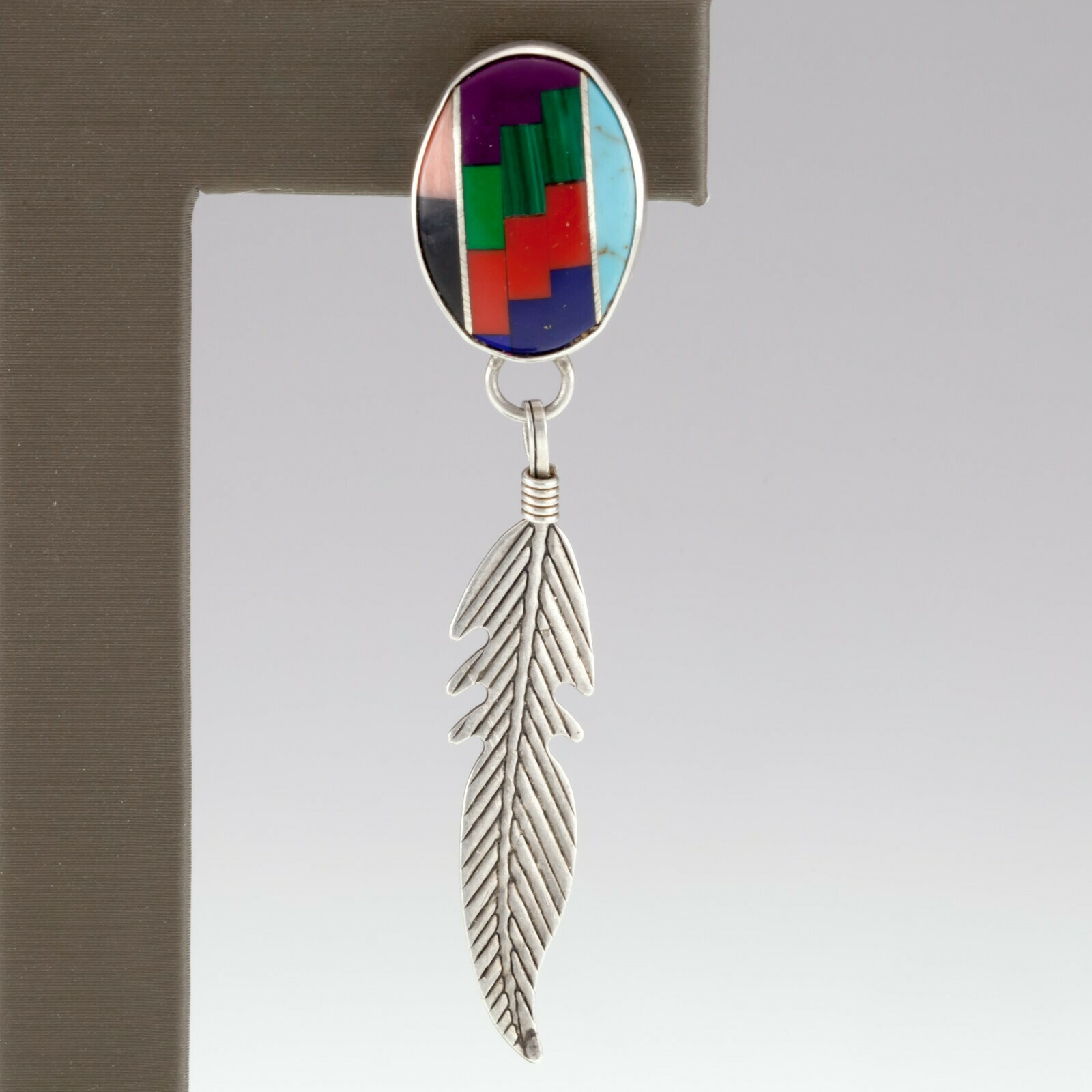 Magnifique boucles d'oreilles en pierre en argent sterling et en plumes