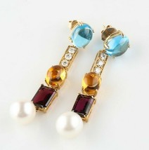 Unique 14k or Jaune Pierre Précieuse, Diamant, Et Perle Clou Goutte Boucles