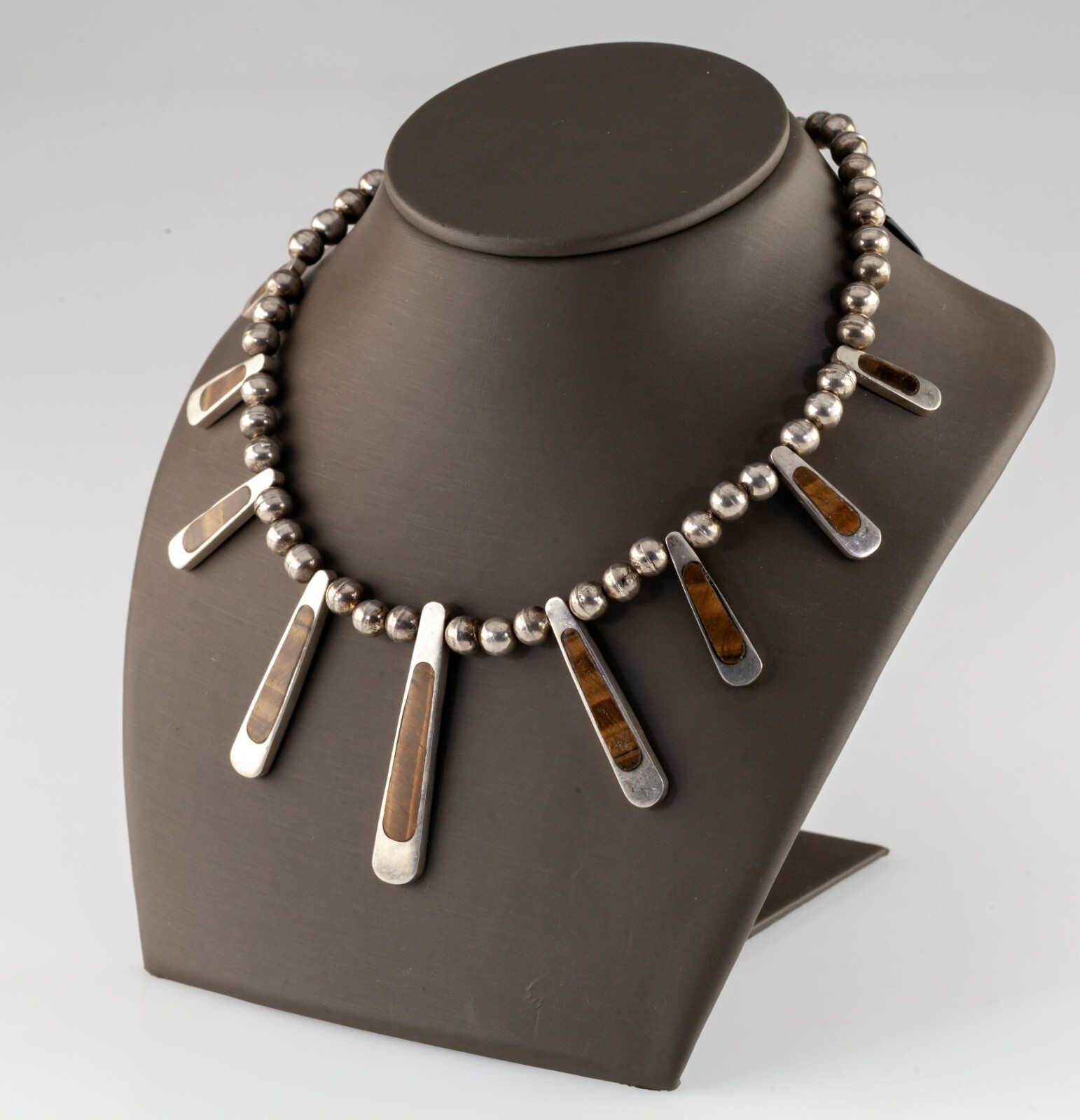 Mexico Argent Sterling Œil de Tigre Bavoir Perle Collier Magnifique ! 17 "