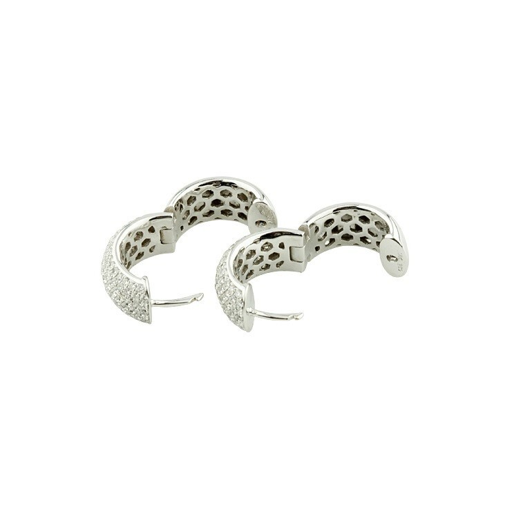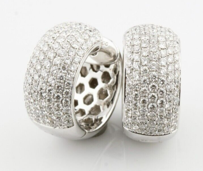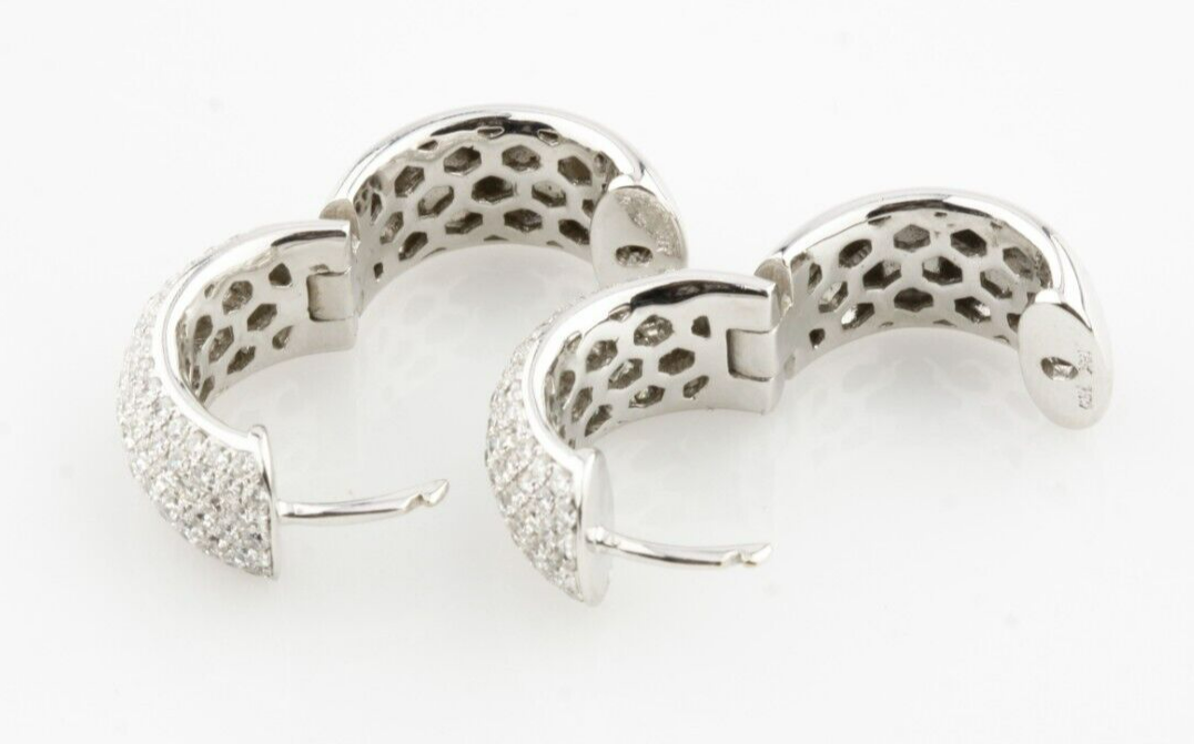 Magnifique 18k or Blanc Rond Diamant Pavé Boucle D'Oreilles Carats Environ 2.50